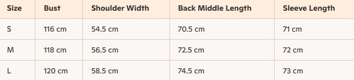 - Size : S, M, L