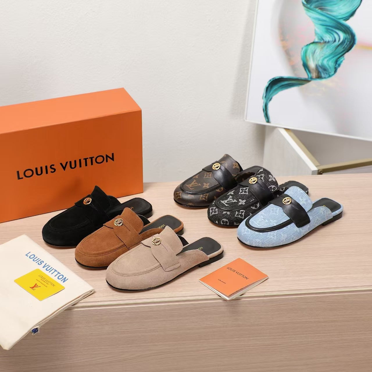 LV 25C Flat Mule Black Monogram Denim Fabric 218314