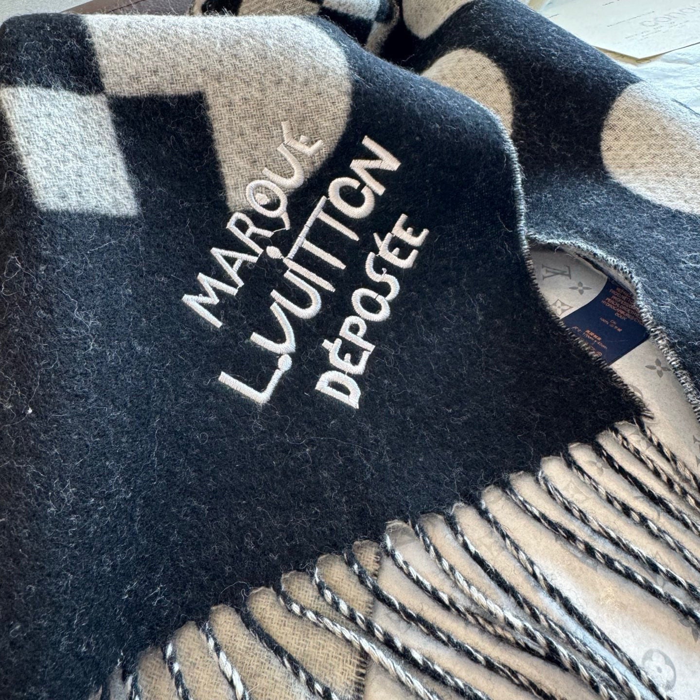 LV 25ss Scarf 180CM Black White Knitted Cashmere 292797