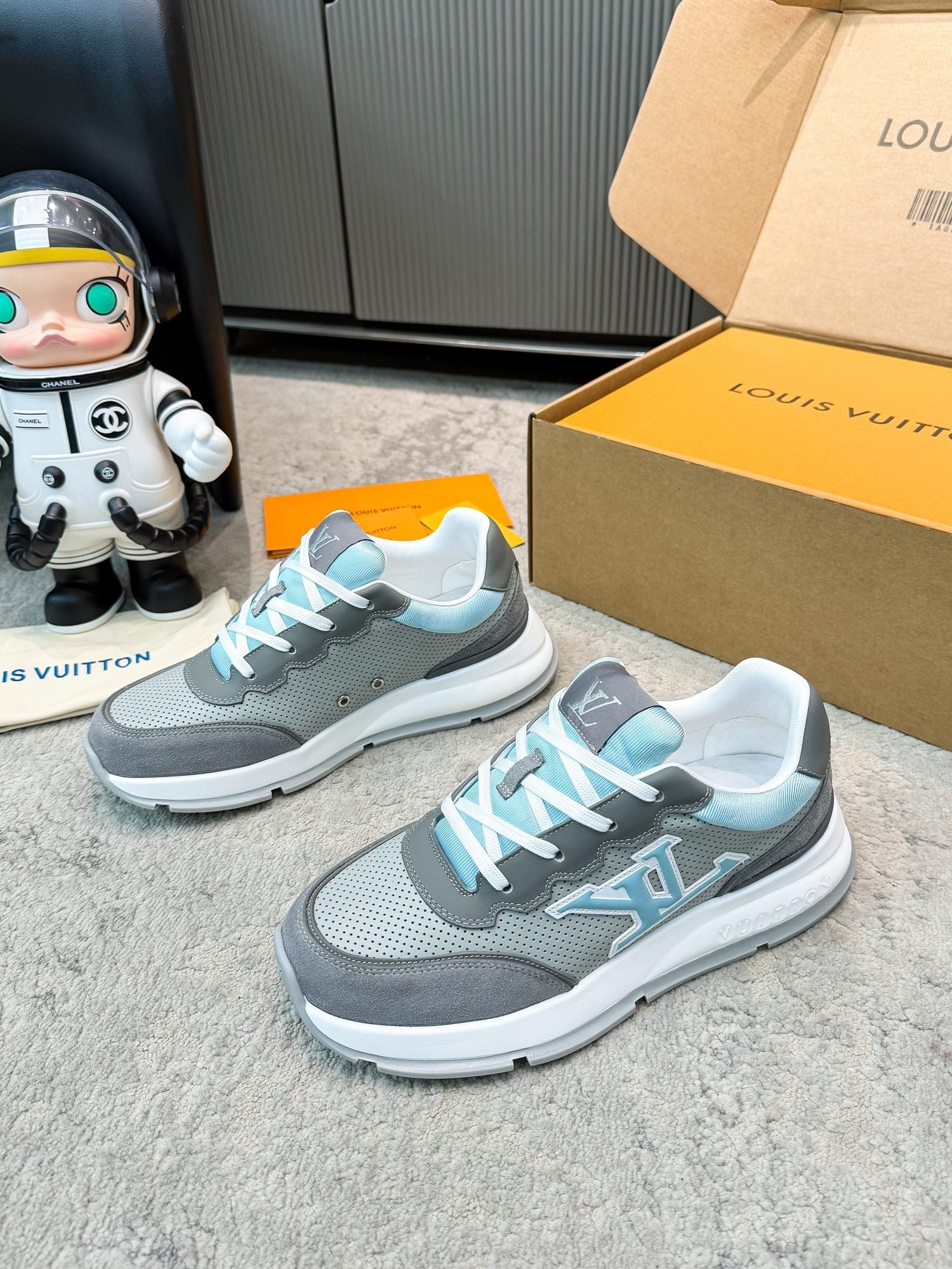LV 26ss Classic Sneaker Gray Blue Mesh Suede 625425