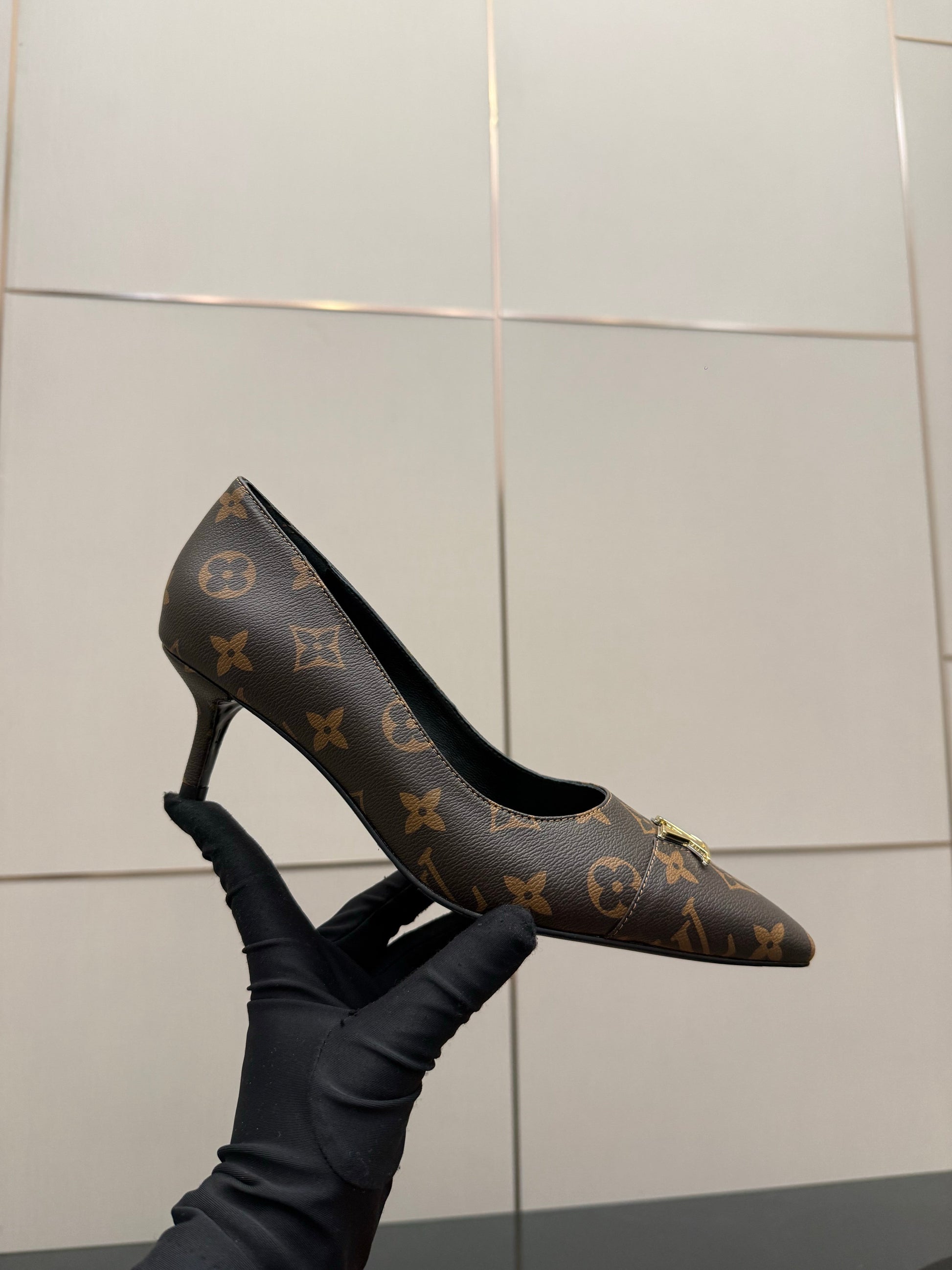 LV 26ss Heel Pump 55 Brown Monogram Calfskin 629633