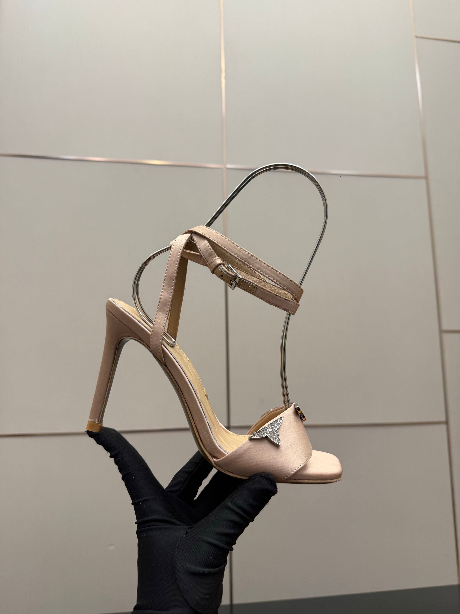 LV 26ss High Heeled Sandals 100 Nude Satin Leather 629622