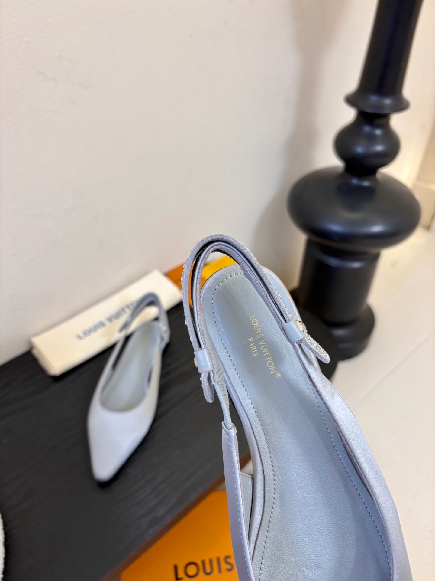 LV 26ss Legacy Slingback Flat Light Gray Silk 627248