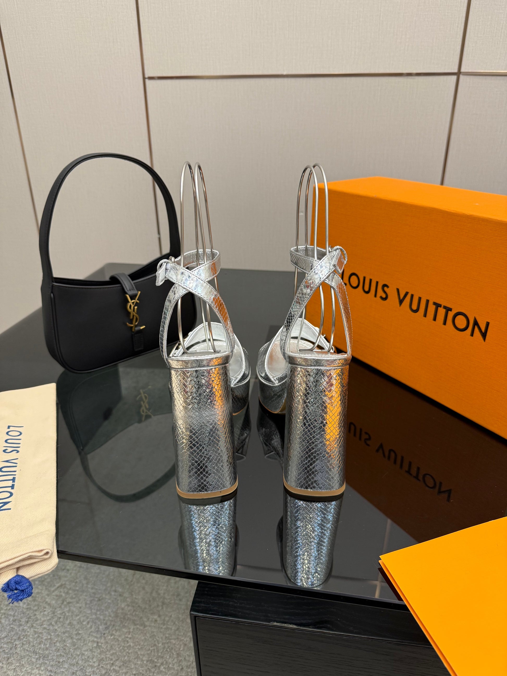 LV 26ss Platform Sandals 110 Metallic Silver Embossed Snakeskin Leather 629614