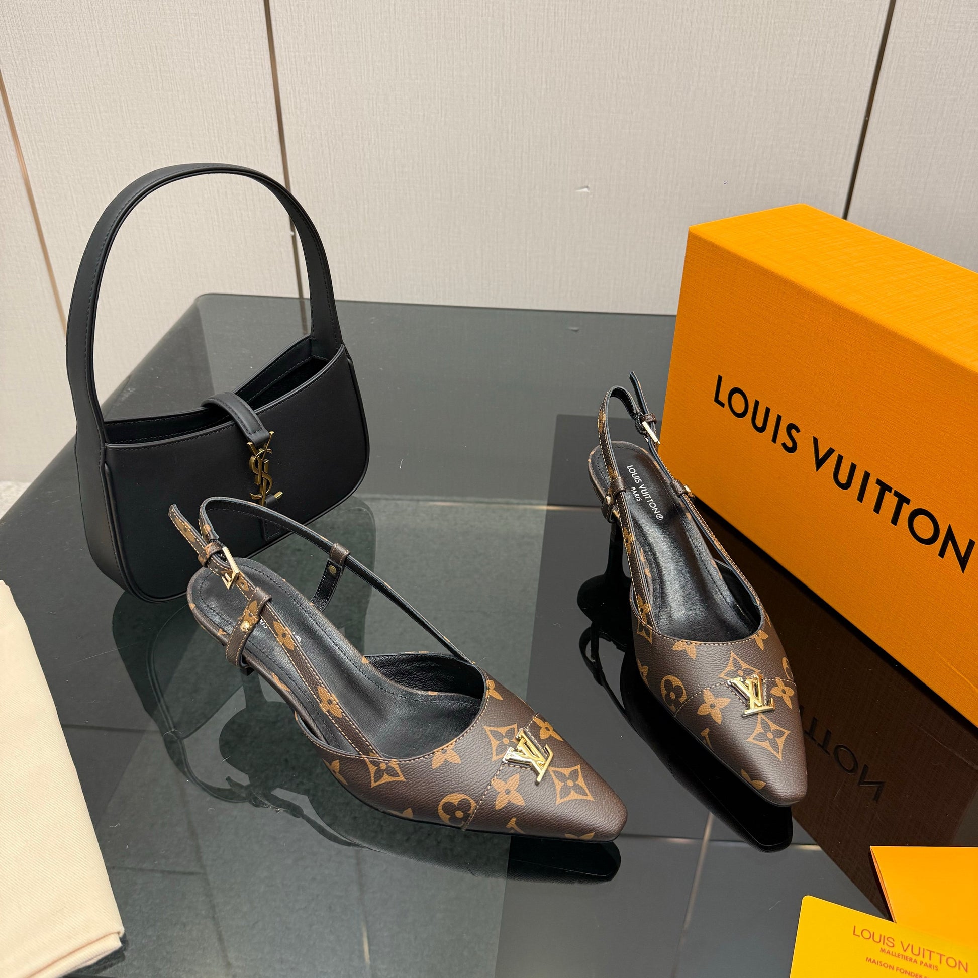 LV 26ss Slingback 55 Brown Monogram Calfskin 629641