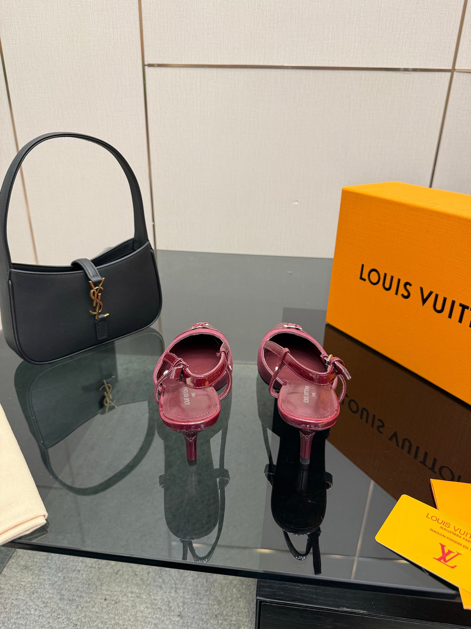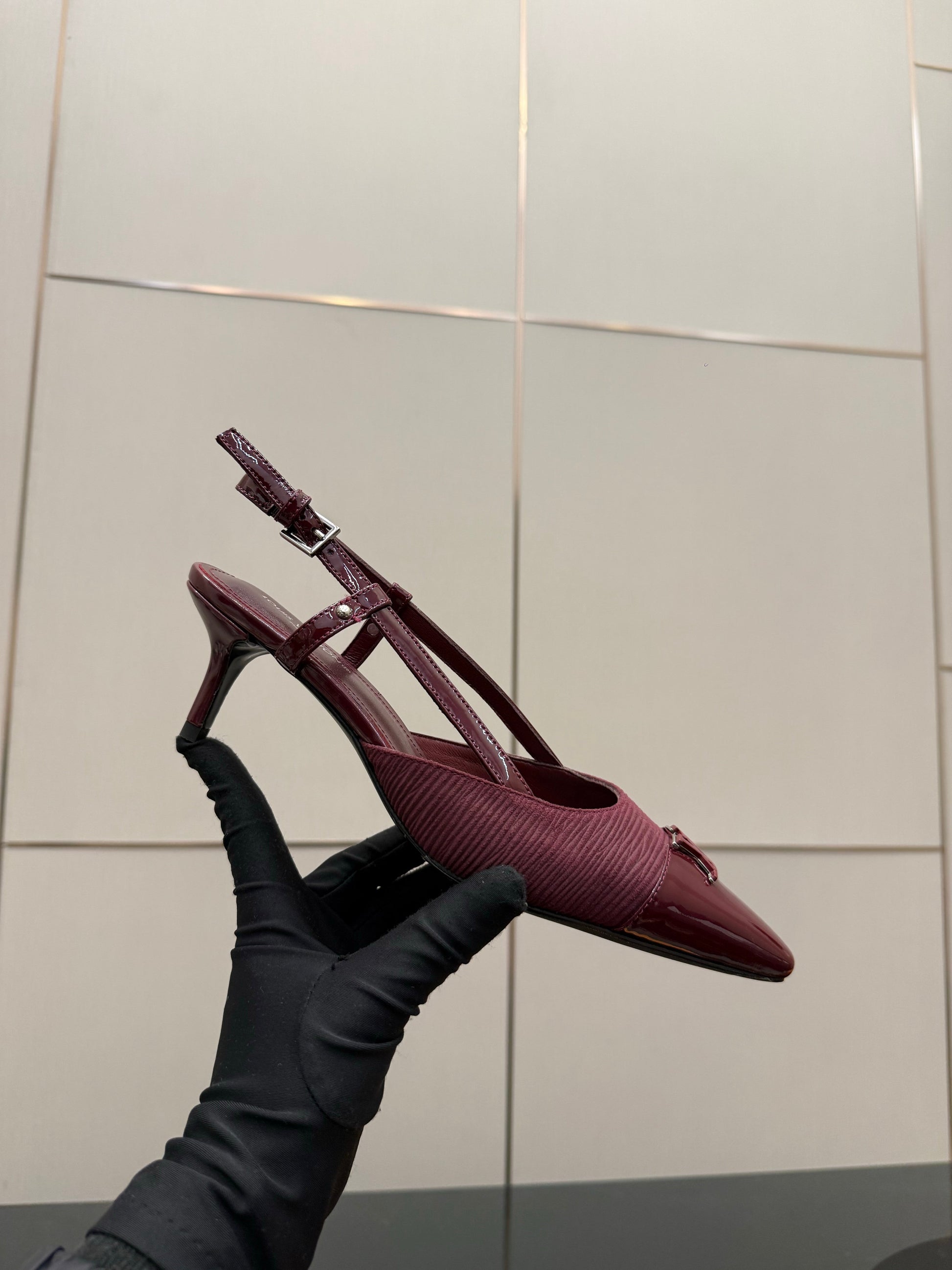 LV 26ss Slingback 55 Burgundy Calfskin Suede 629644
