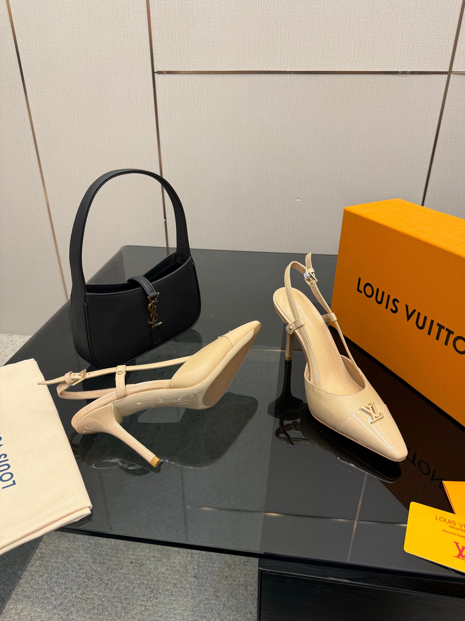 LV 26ss Slingback 90 Beige Patent Leather 629638
