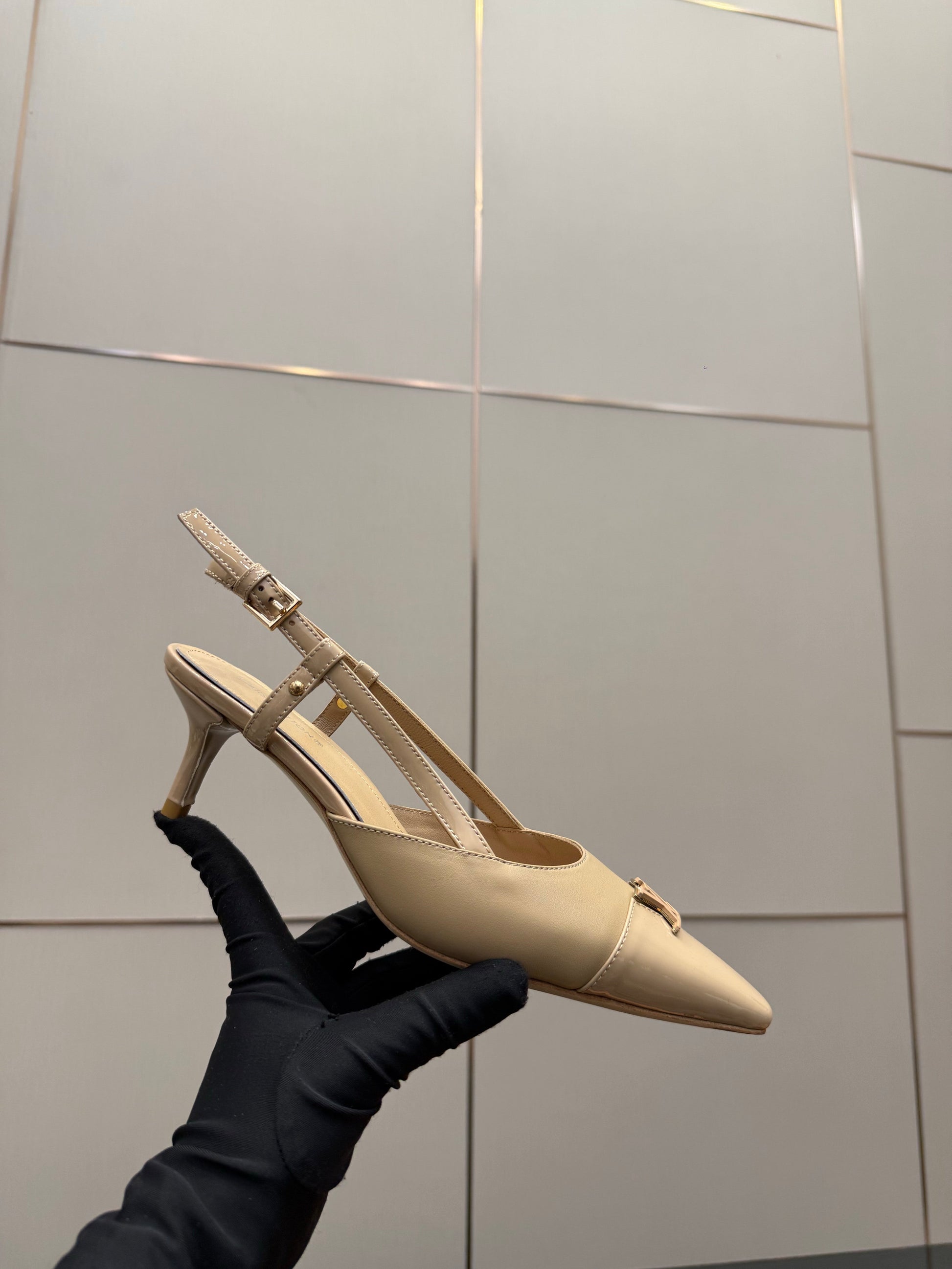 LV 26ss Slingback 55 Beige Patent Leather 629639