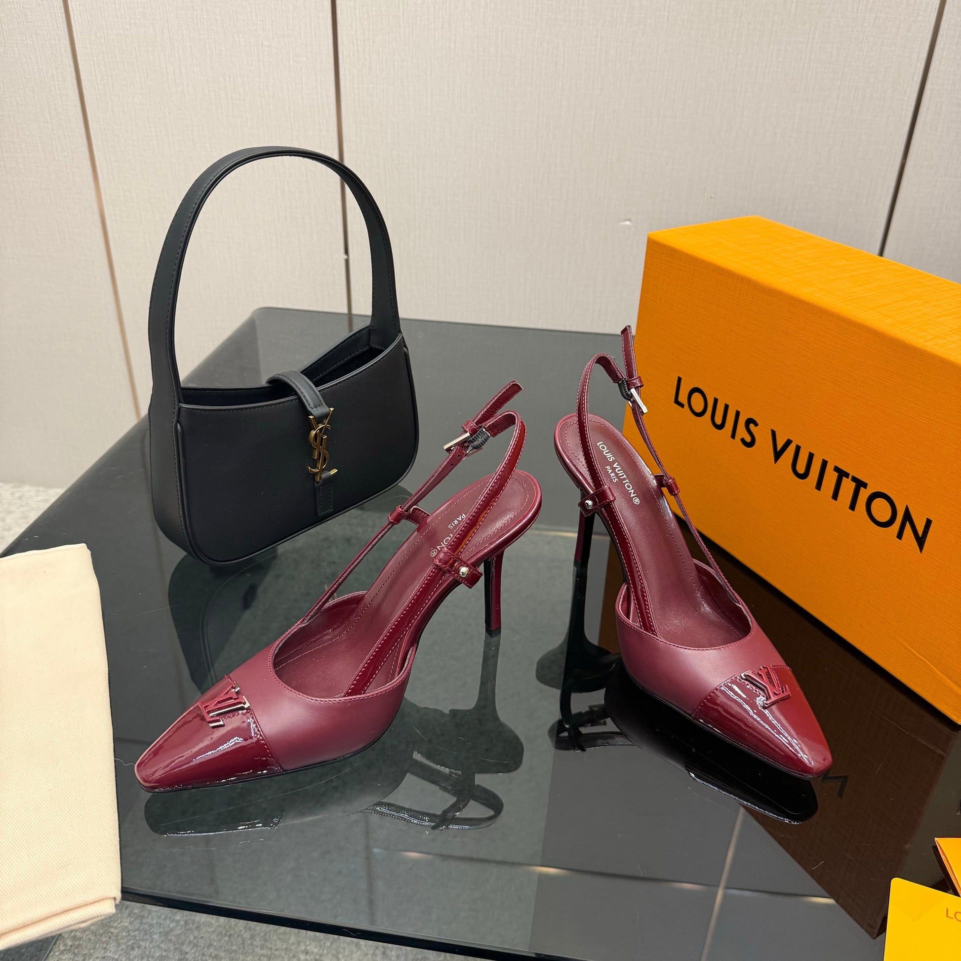 LV 26ss Slingback 90 Burgundy Patent Leather 629634