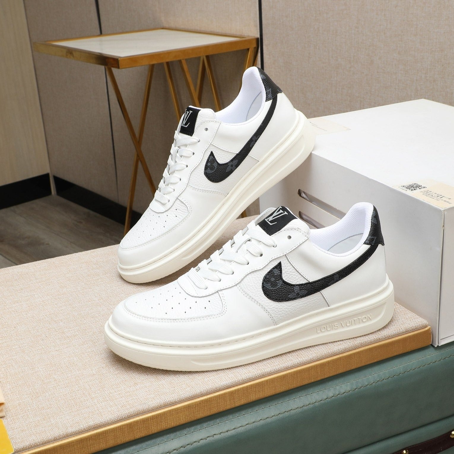 LV AIR FORCE 1 GLOSSY WHITE CALFSKIN WITH BLACK MONOGRAM LOGO