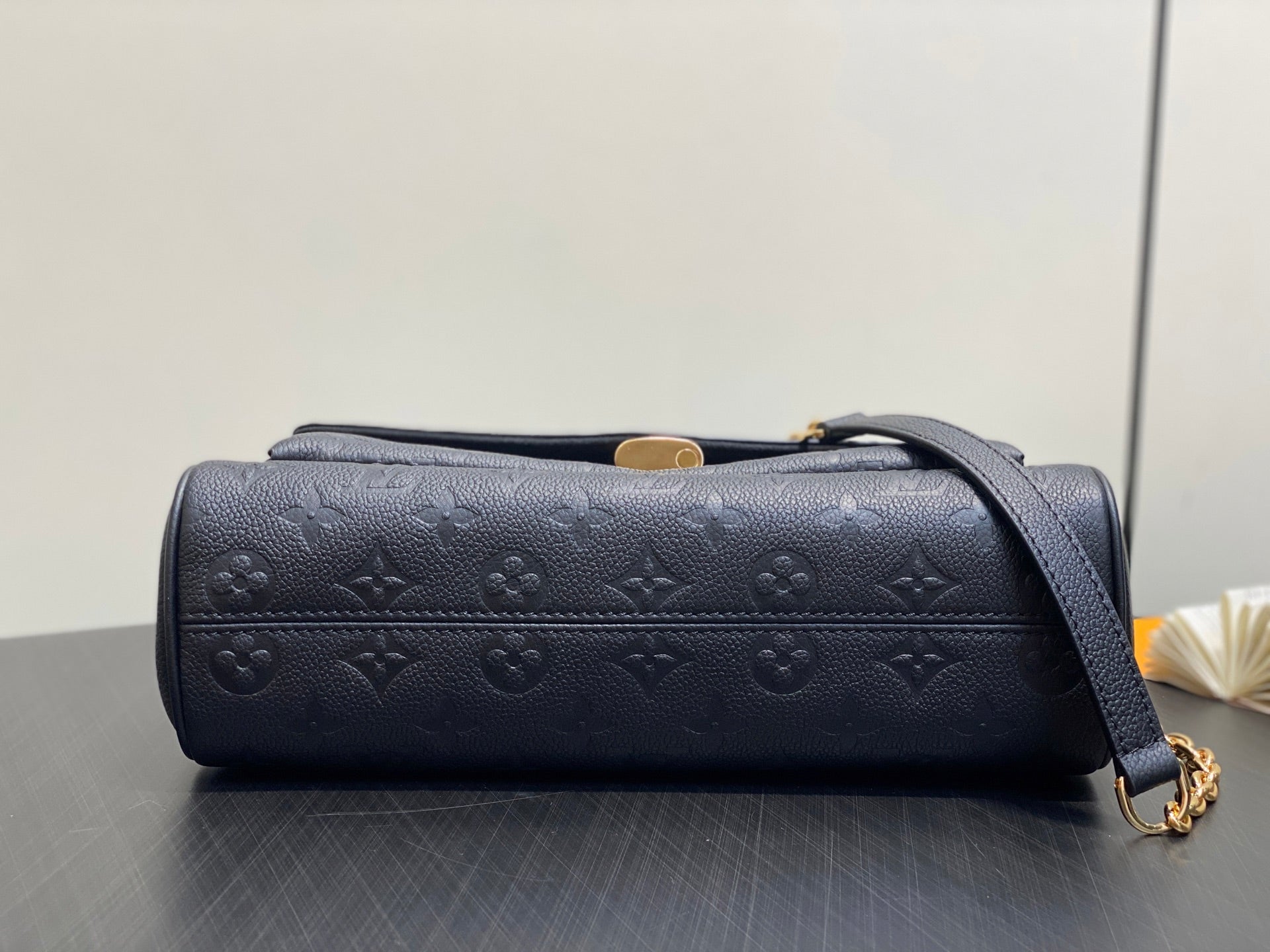 - Gold-toned hardware