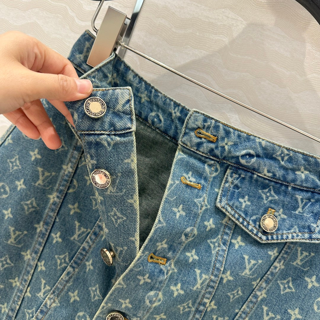 LV Bear Border Denim Skirt Blue Cotton
