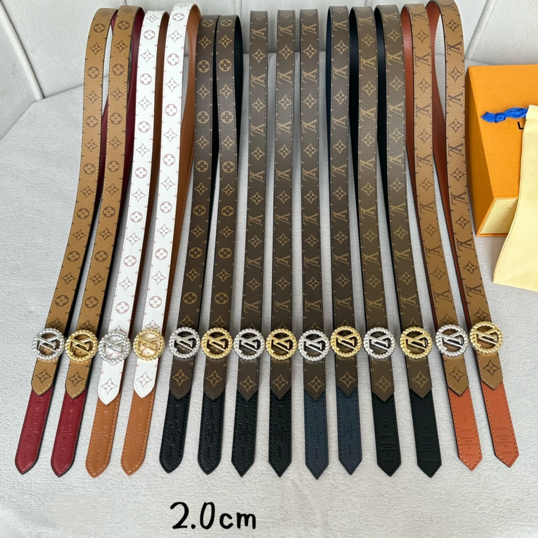 LV Circle Nautical 20mm Reversible Belt Gold Buckle Black Brown Leather