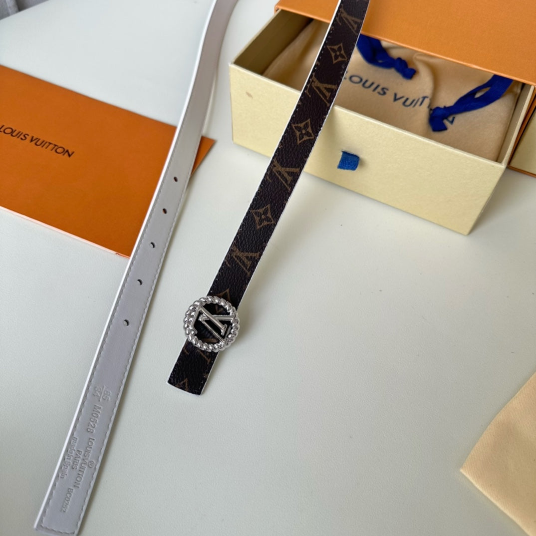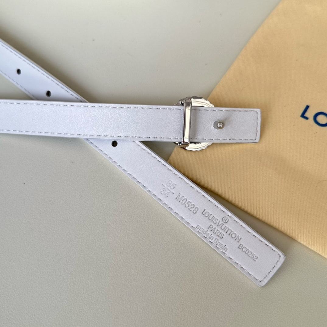LV Circle Nautical 20mm Reversible Belt Silver Buckle White Brown Lambskin