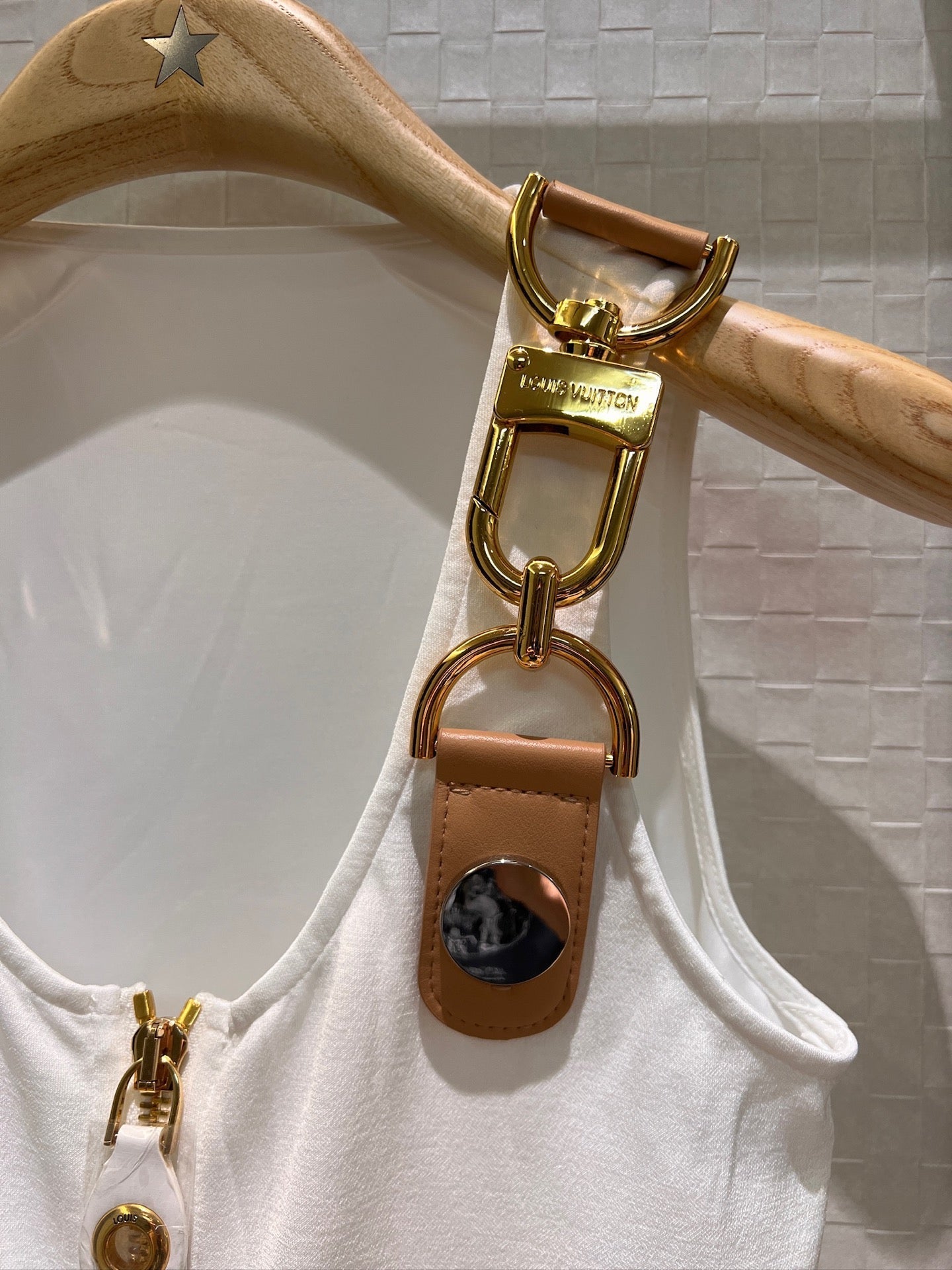 LV Double-Head Zipper Design Slits Dress White Cotton