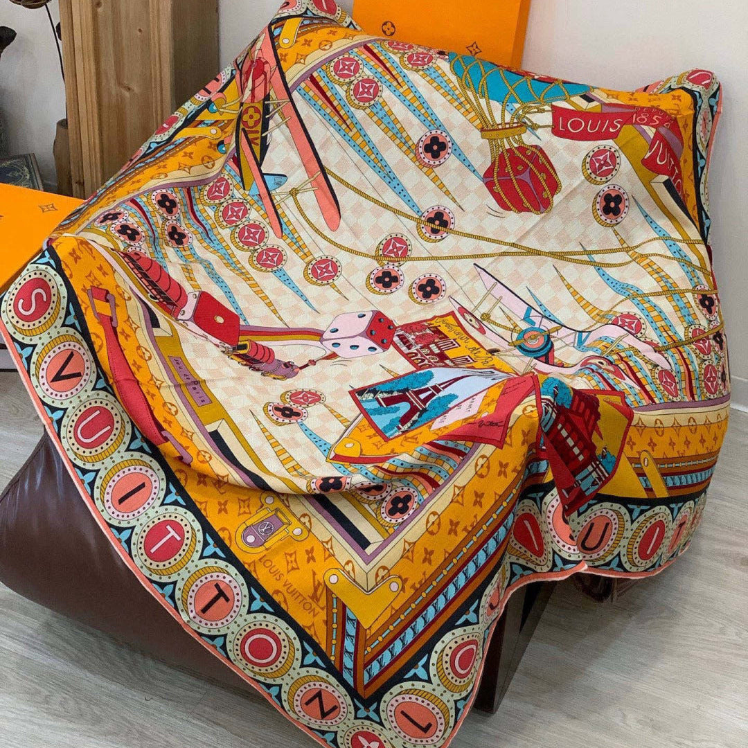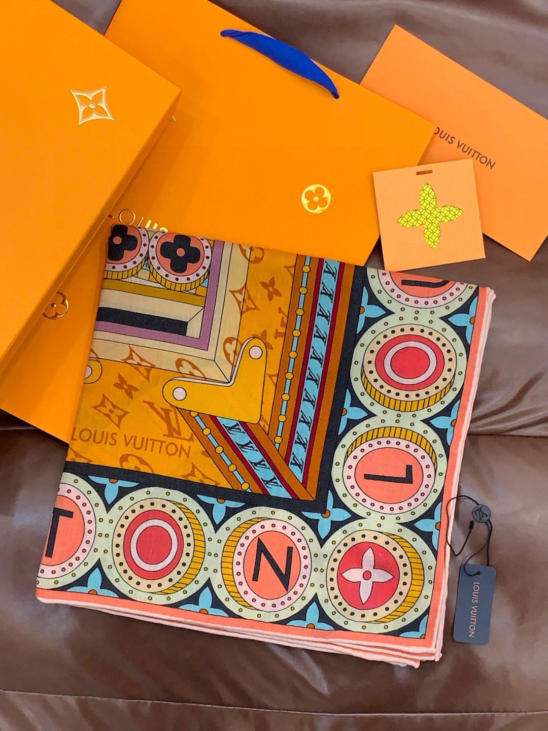 LV Double-sided Scarf 135cm Multicolor Silk Cashmere 973069