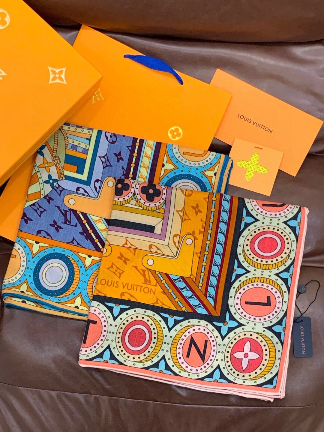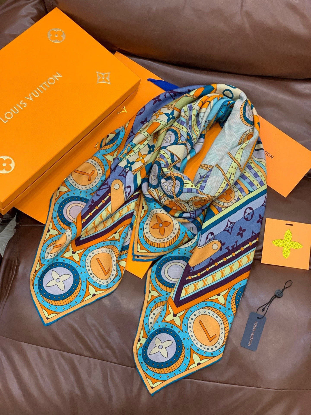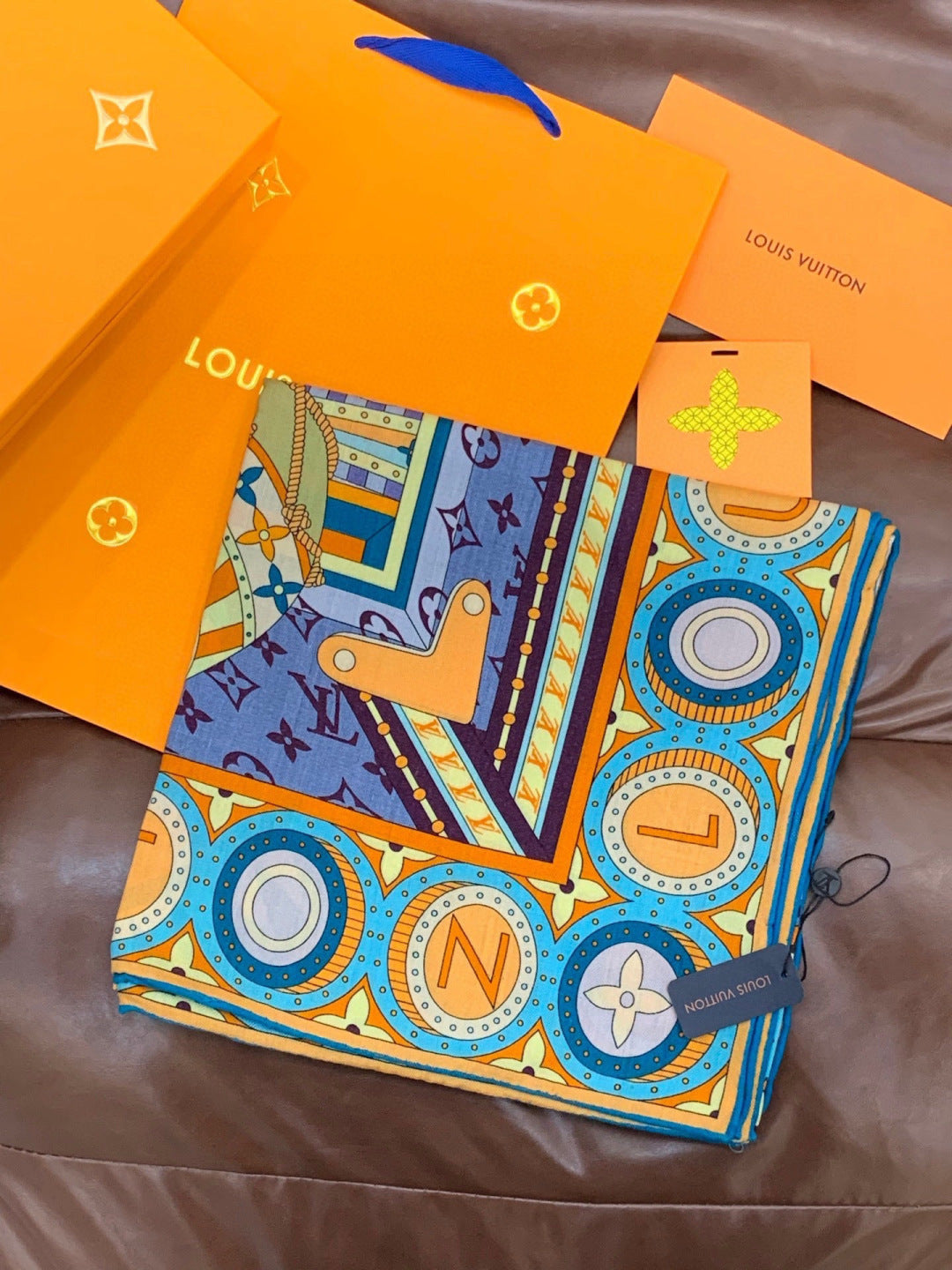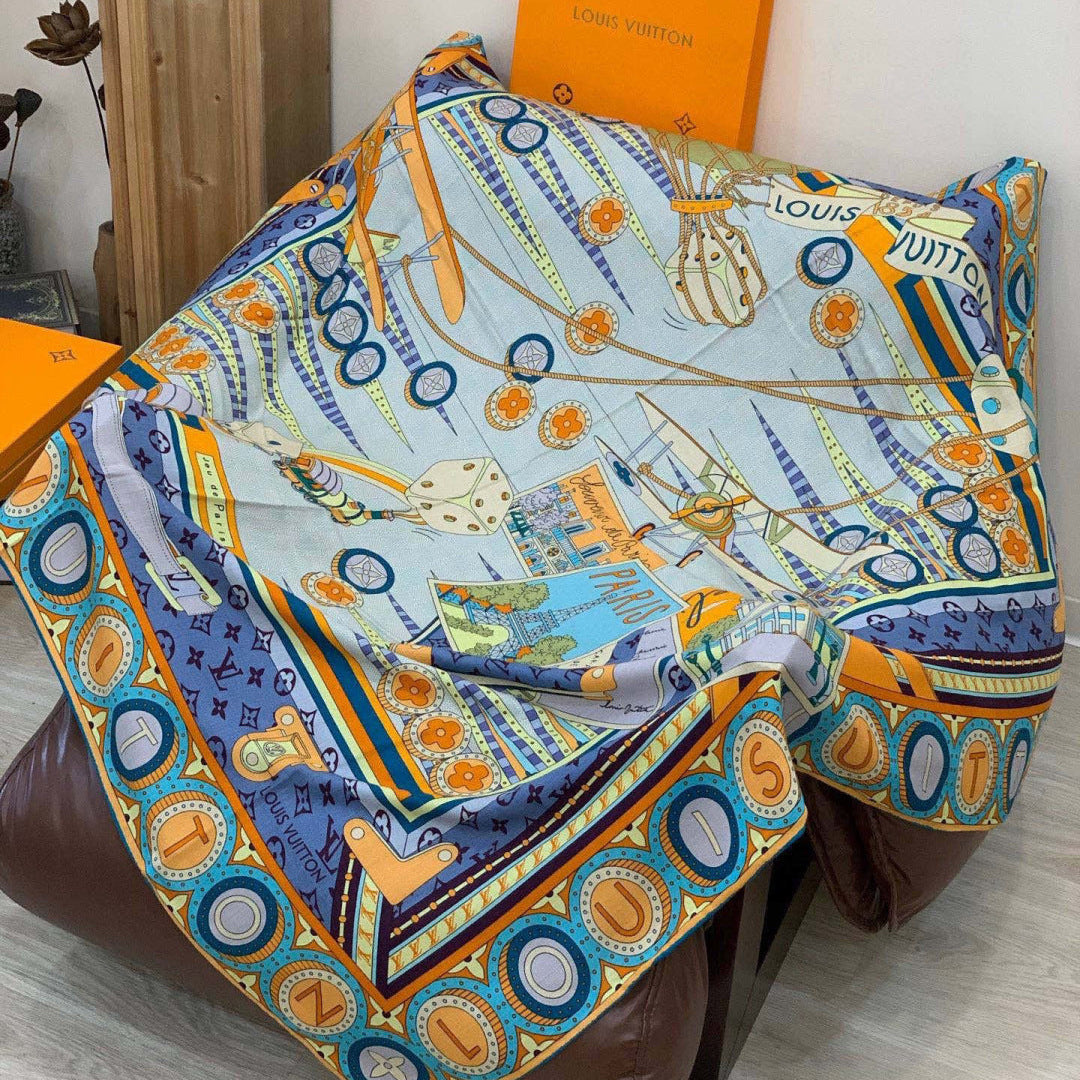 LV Double-sided Scarf 135cm Multicolor Silk Cashmere 973070