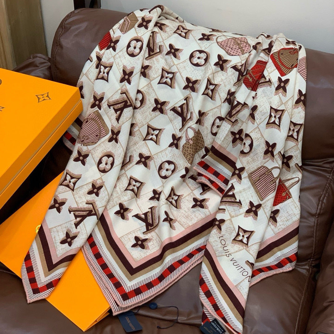 LV Double-Sided Shawl Scarf 135cm Black Red Cashmere 968796