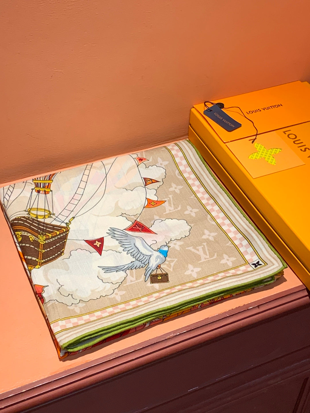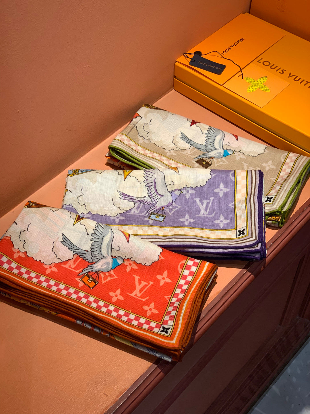 LV Double-Sided Shawl Scarf 135cm Orange Beige Cashmere 968788