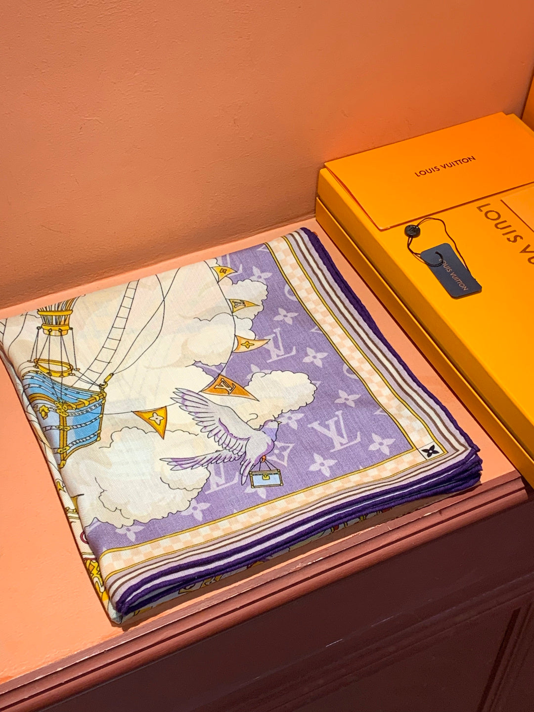 LV Double-Sided Shawl Scarf 135cm Purple Beige Cashmere 968786
