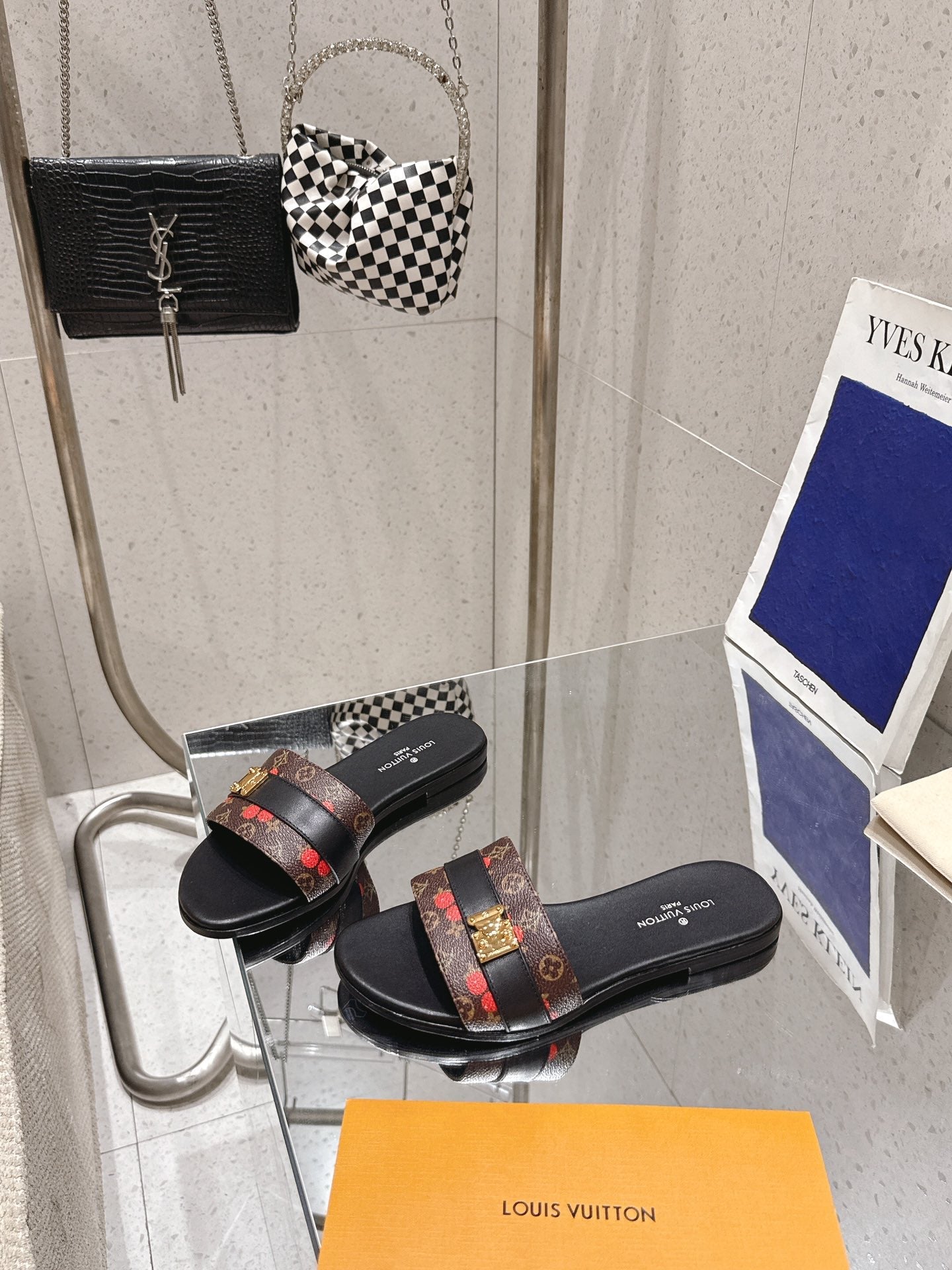 LV Flat Mules pairs raffia black brown monogram cowhide 383721