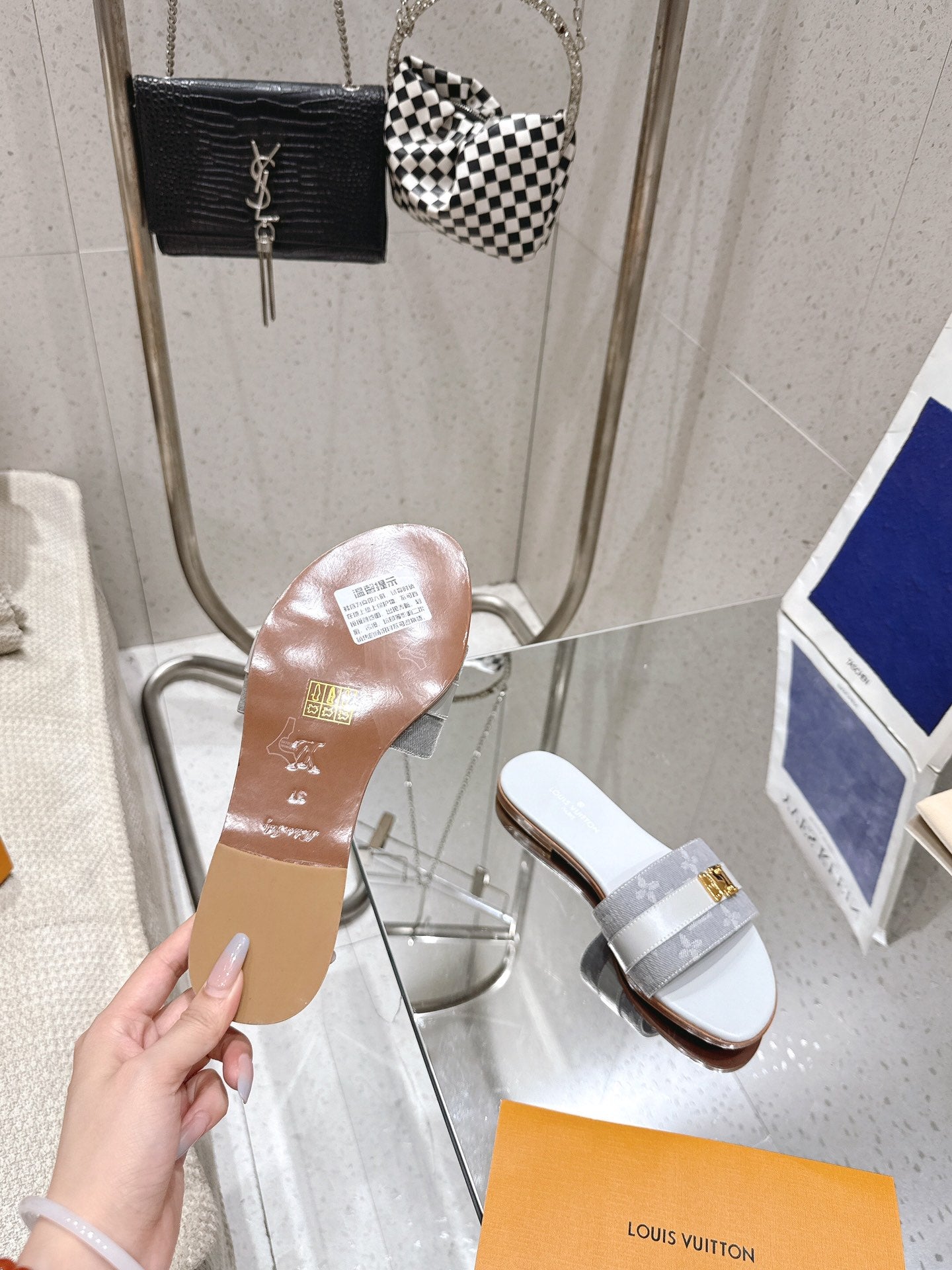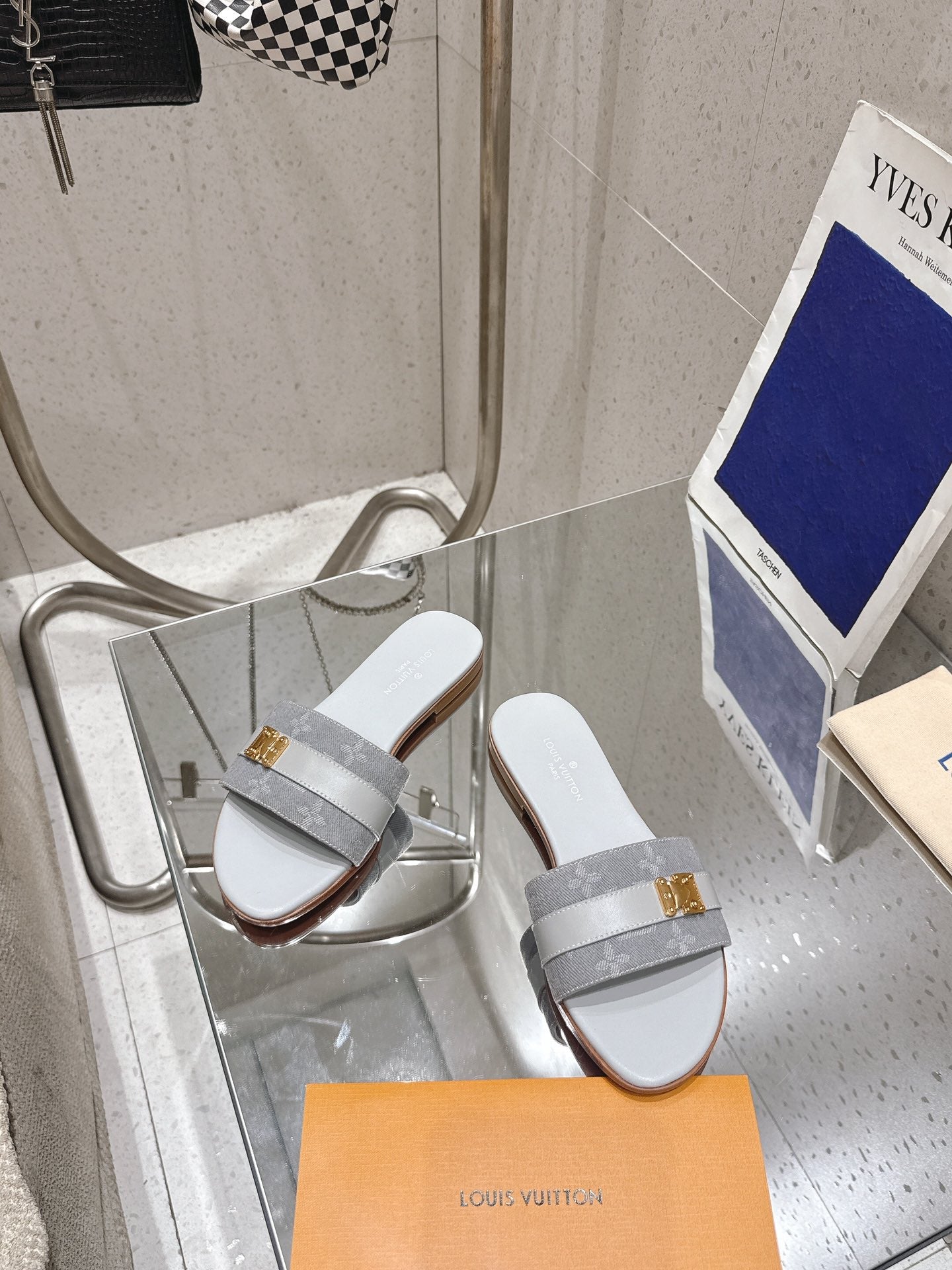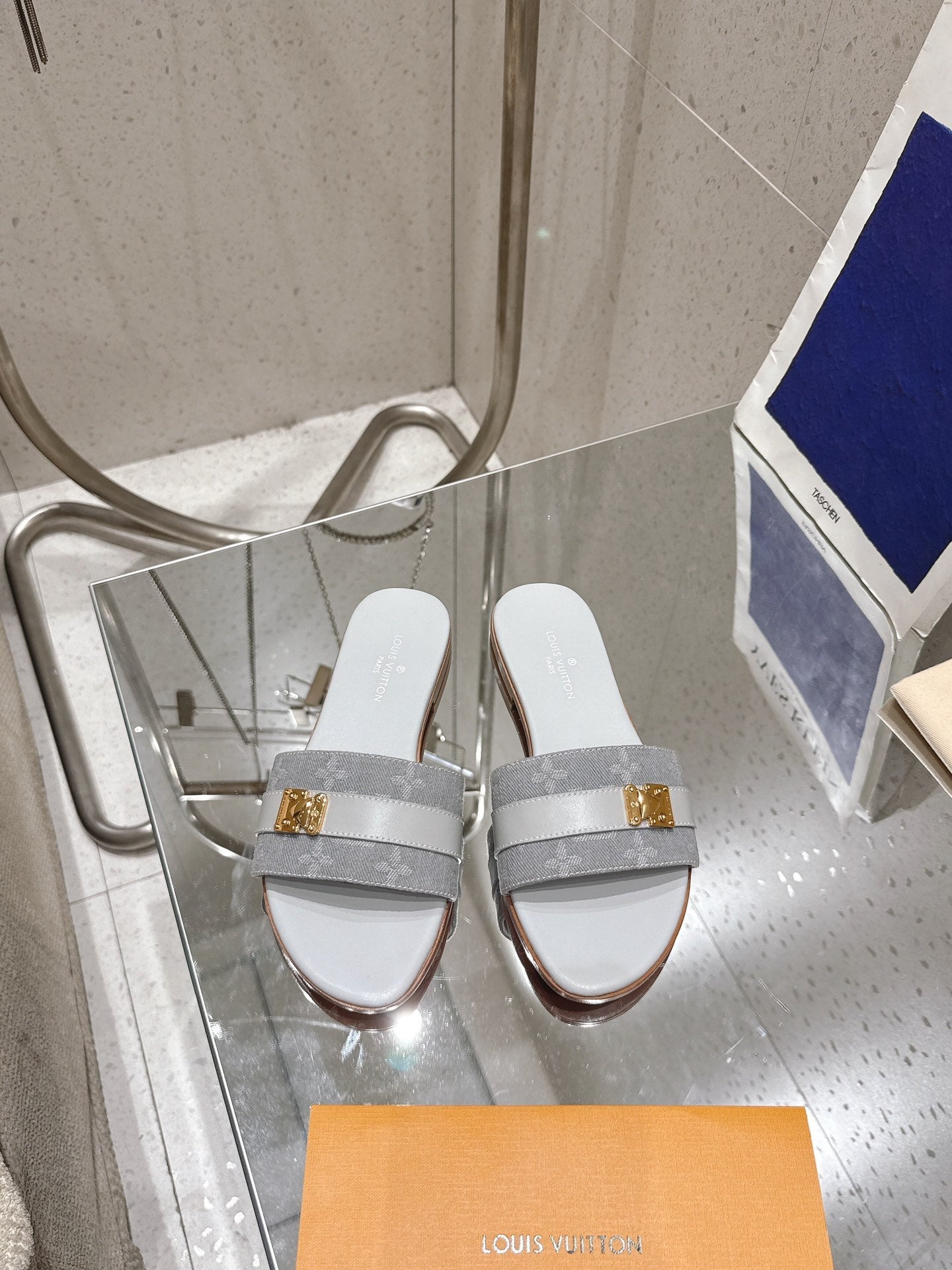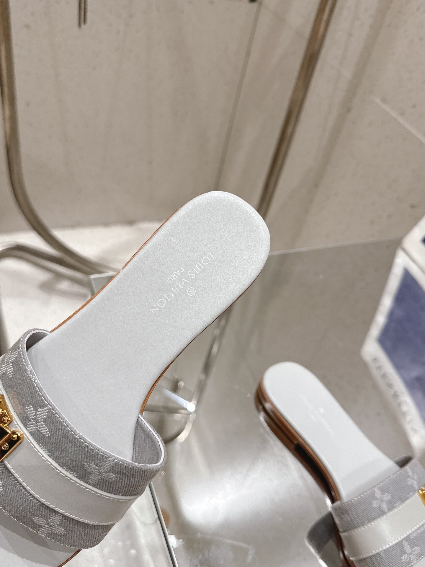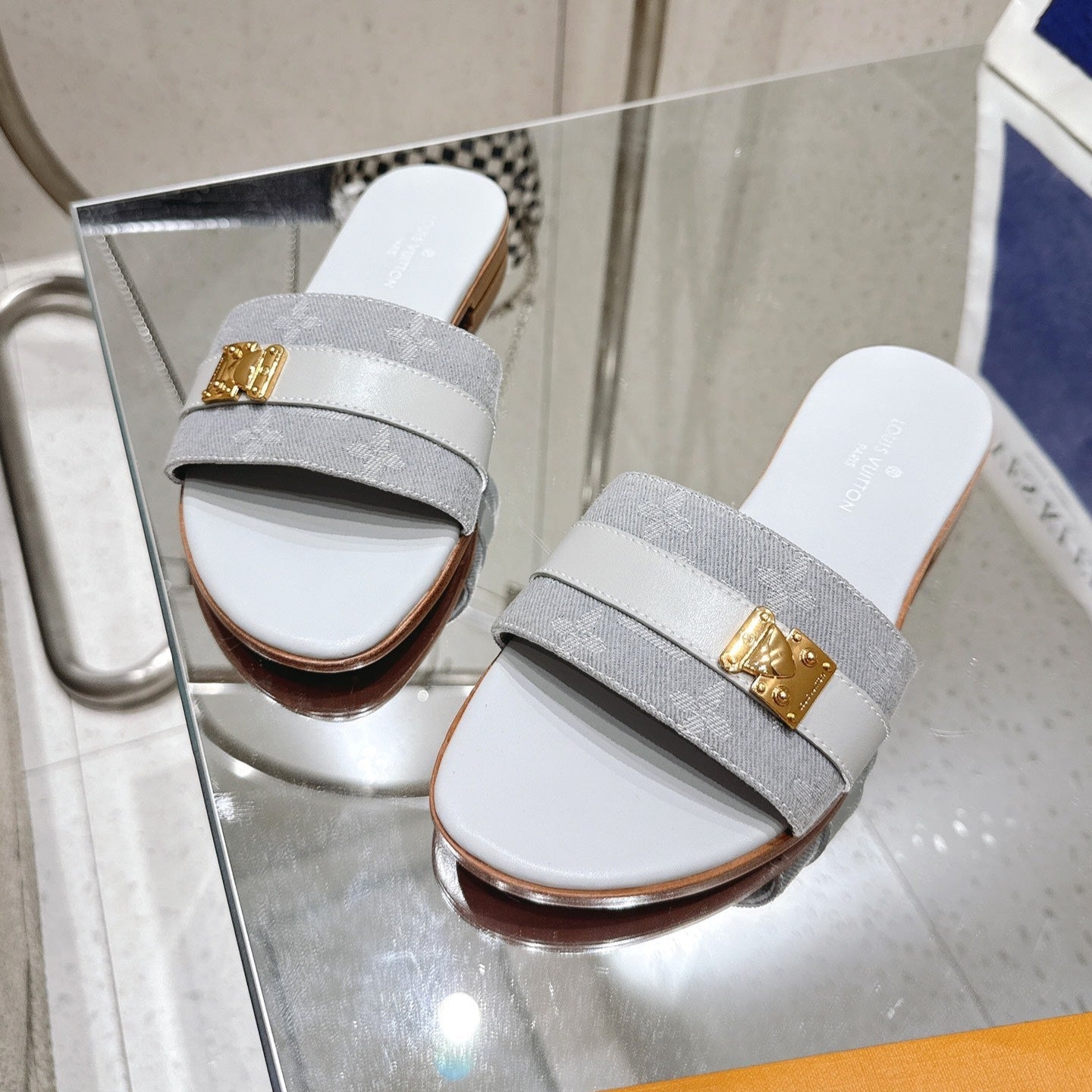 LV Flat Mules pairs raffia gray mix denim cowhide 383720