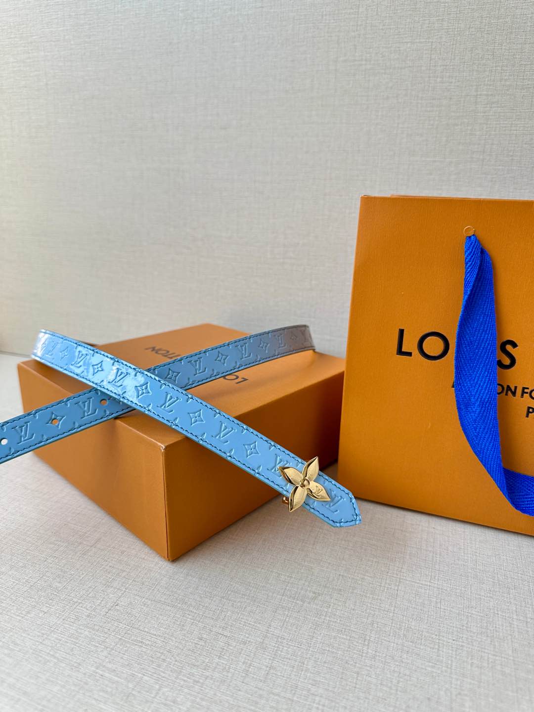 LV Flowergram 20mm Reversible Belt Beige Blue Calfskin