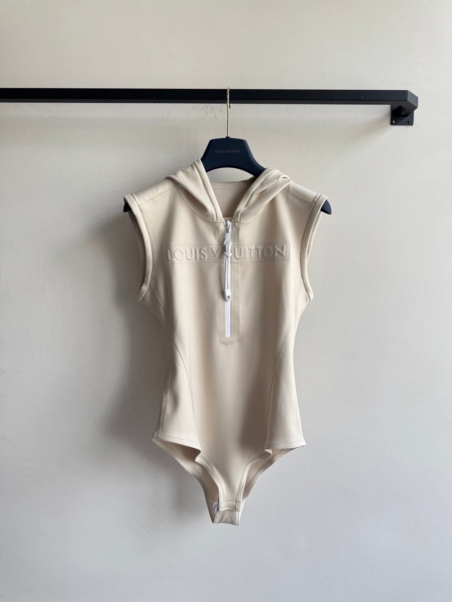LV Holida Zipper Hooded Jumpsuitn Beige Polyamide Spandex