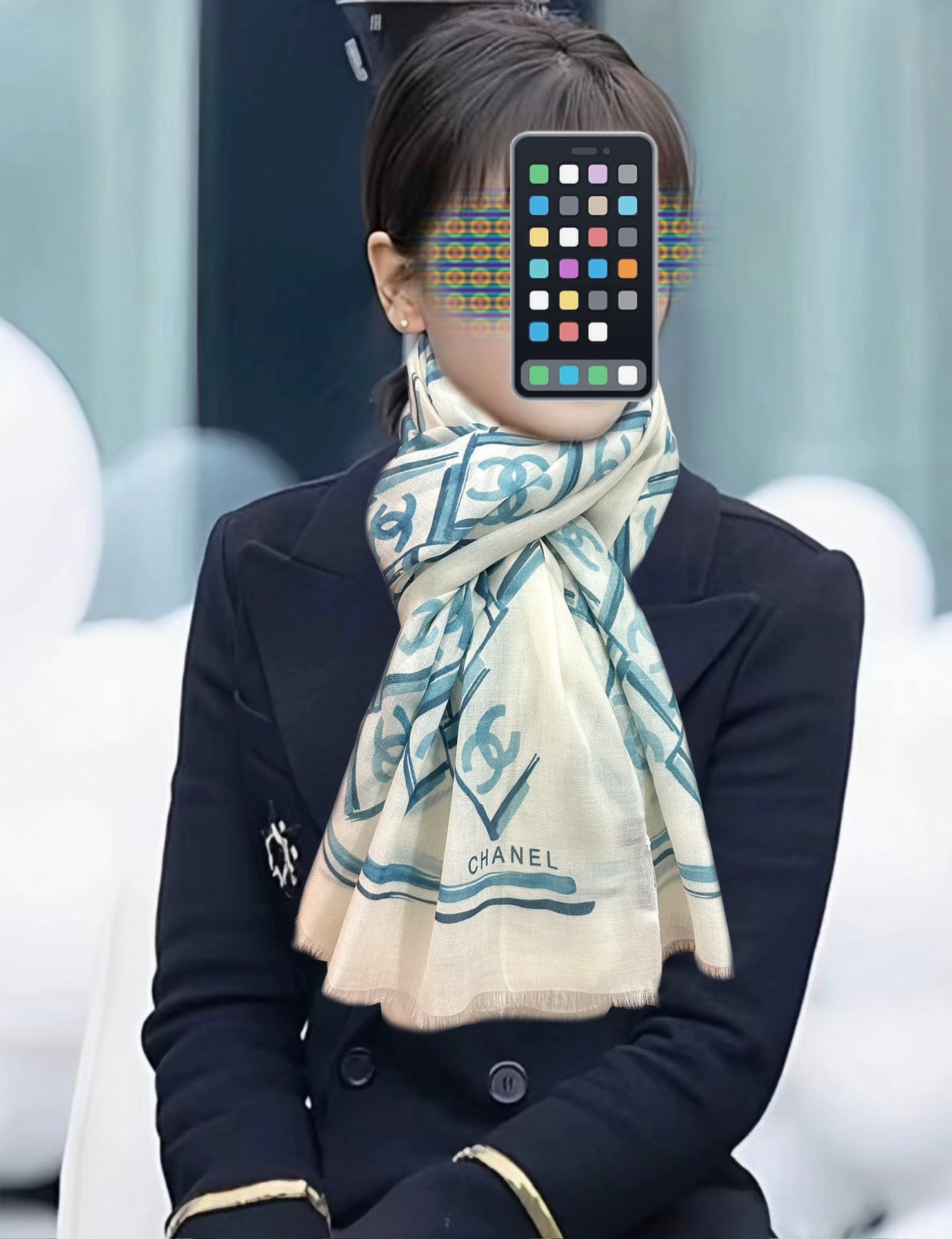 LV Latest Style Scarf 200cm White Blue Cashmere 970872