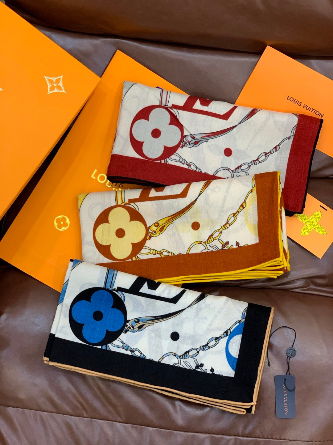 LV Latest Style Scarf 140cm Black Blue Cashmere 969239