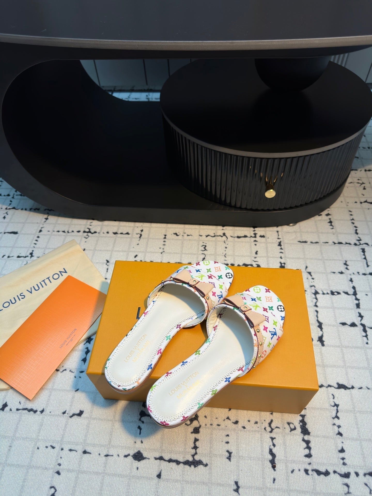 LV LV x TM 6AM Flat Mule White with Monogram Multicolore Leather 218910