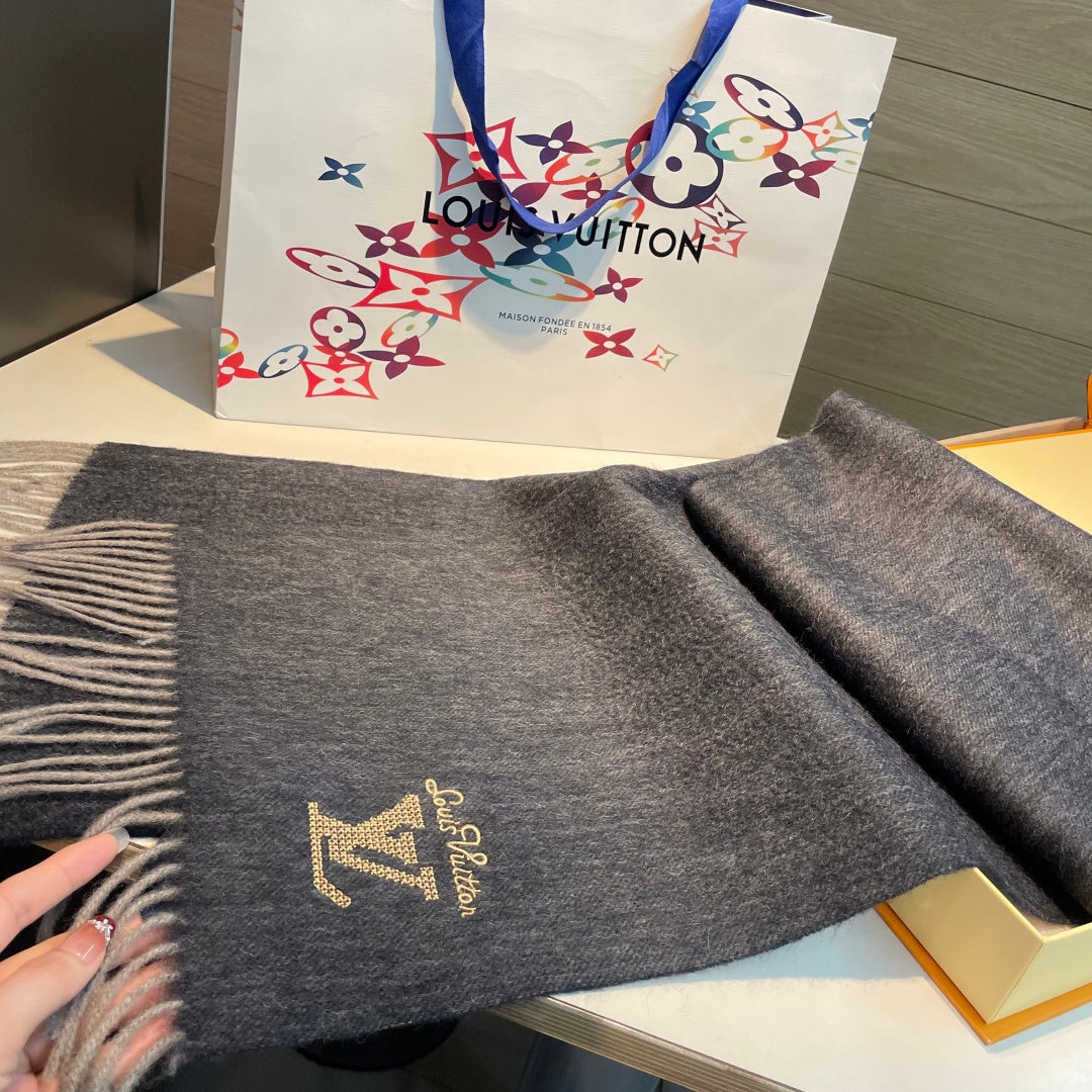 LV Men's Scarf 180cm Black Wool Cashmere 978825