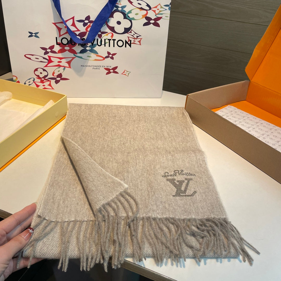 LV Men's Scarf 180cm Gray Wool Cashmere 978827
