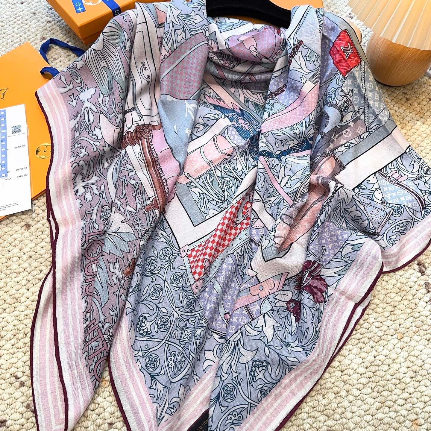 LV Monogram Scarf 135cm Purple Blue Silk Cashmere 967278