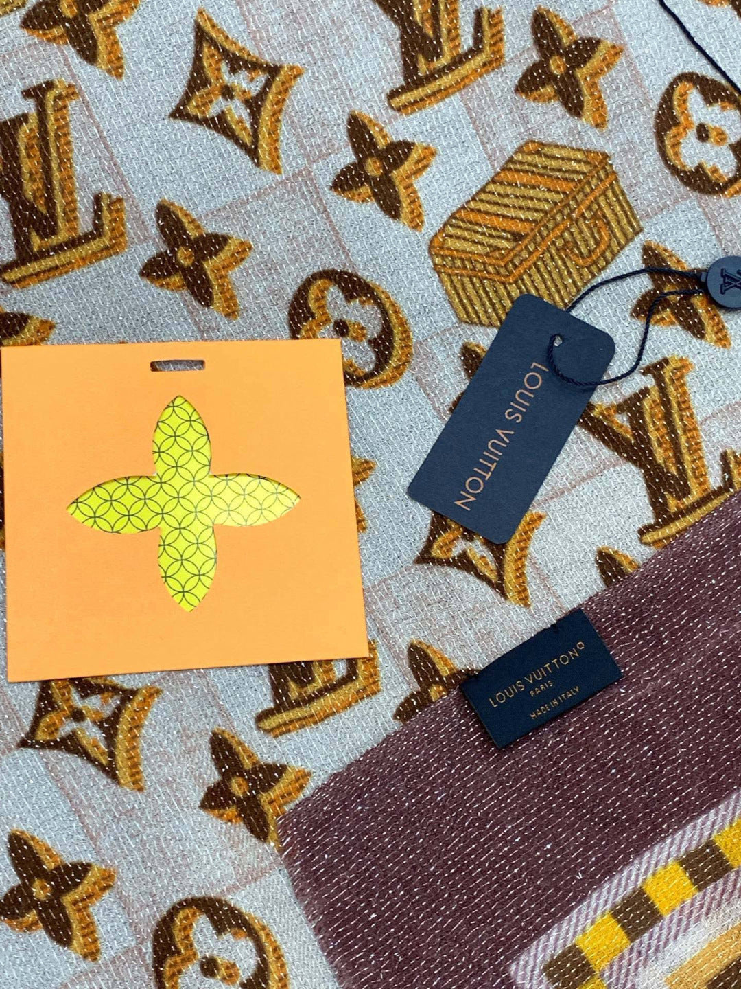 LV Monogram Scarf 200cm Purple White Brown Cashmere 969184
