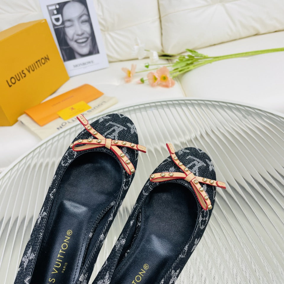 LV Nina Doll Shoes Black Monogram Denim Printed Fabric