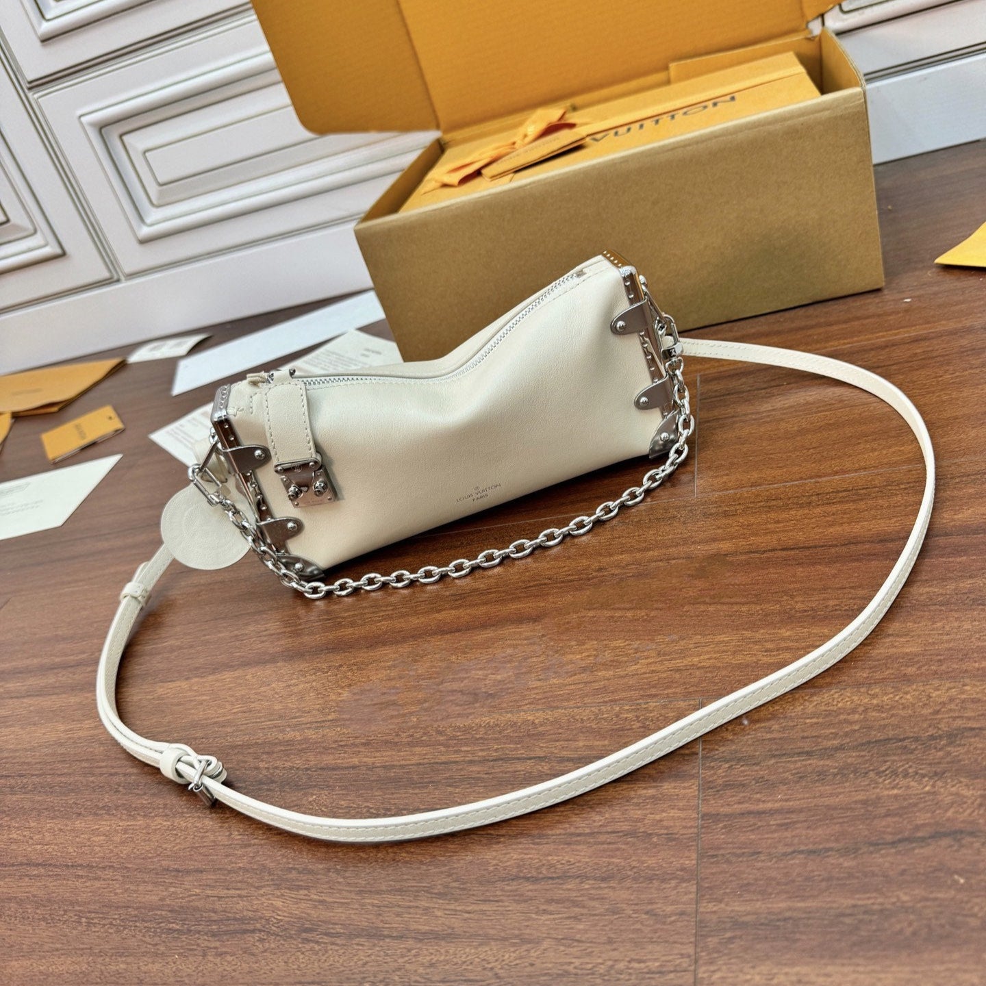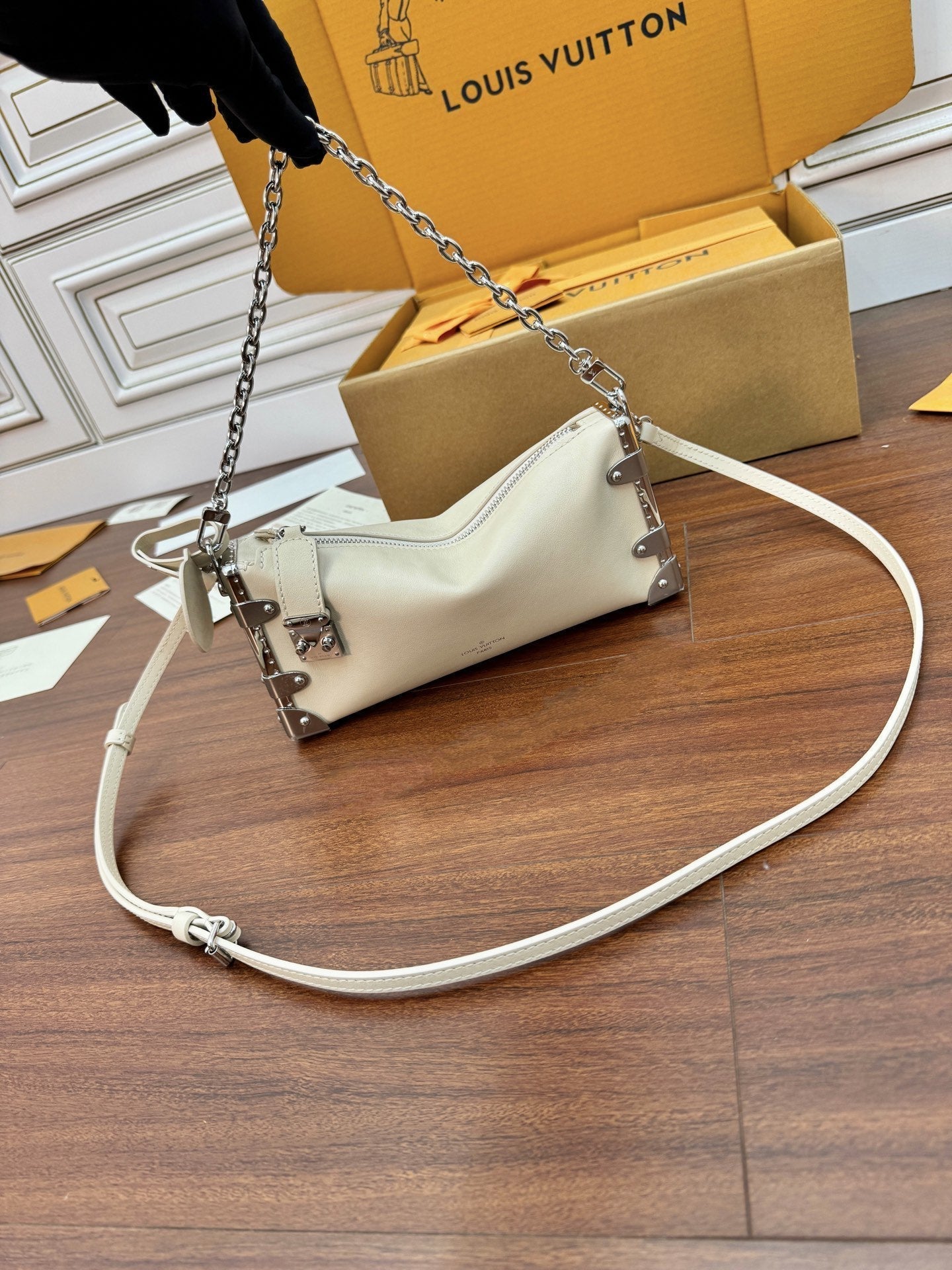 LV Petite Malle 23cm White Italian Leather 330411