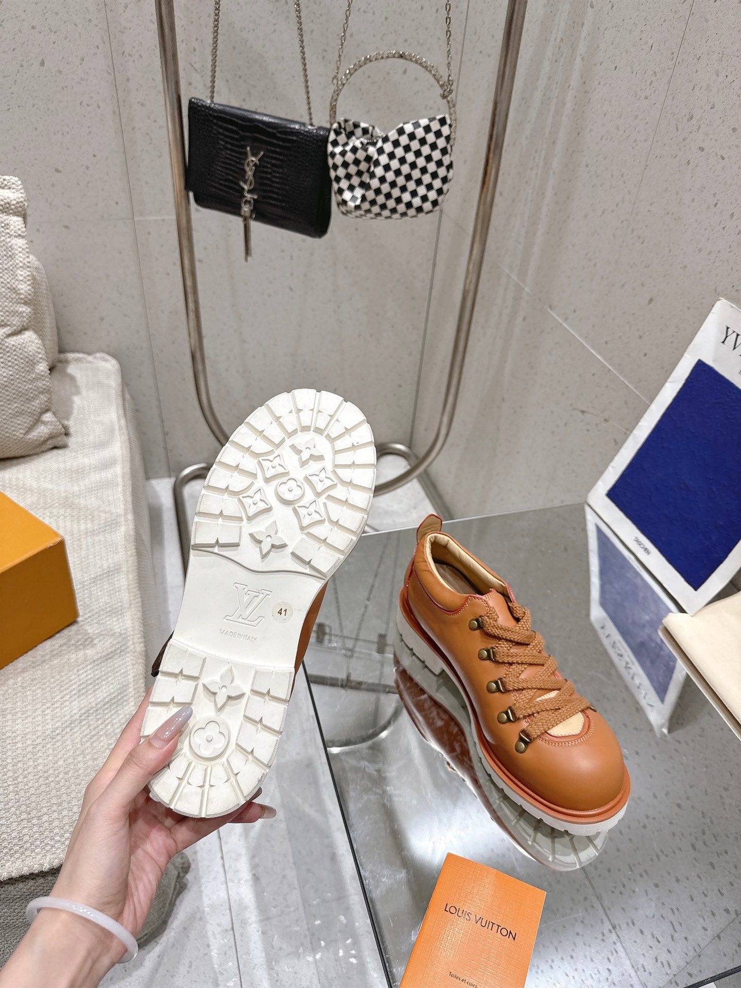LV Pharrell and Nigo Hiking Shoes Brown Sheepskin 383744
