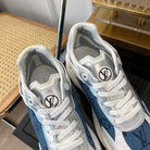 RUN 55 series leisure sports shoes are made of composite mesh fabric, rubber, adhesive film, and other technological materials. They are paired with solid color cowhide and suede cowhide, exuding a sporty style. The added cushioned lining and thickened rubber outsole provide comfortable wear. Monogram canvas heel straps and other logos convey brand interest, combining fashion and practicality. It won't rub your feet and increases height by 5cm, forcefully giving you long legs! With good looks, height, and technical features, this modern sports shoe enhances the proportion of the thighs when worn and has high technology content. 😍 Perfect details 💯