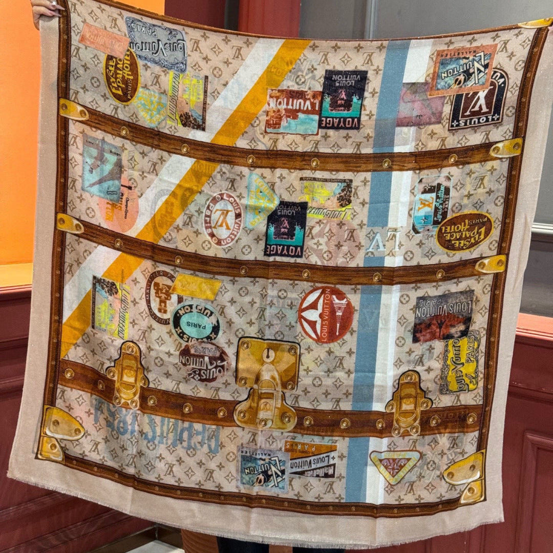 LV Silver Thread Long Scarf 200cm Beige Brown Cashmere 969181