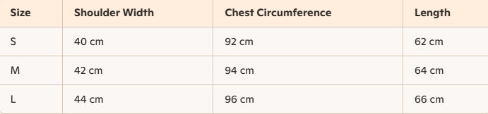 - Size : S, M, L