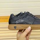 LV TRAINERS IN BLACK CALFSKIN AND BROWN RUBBER