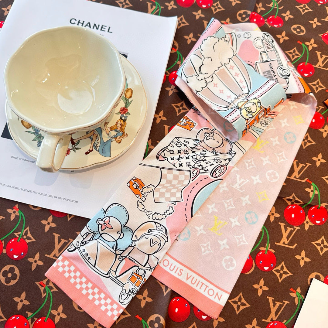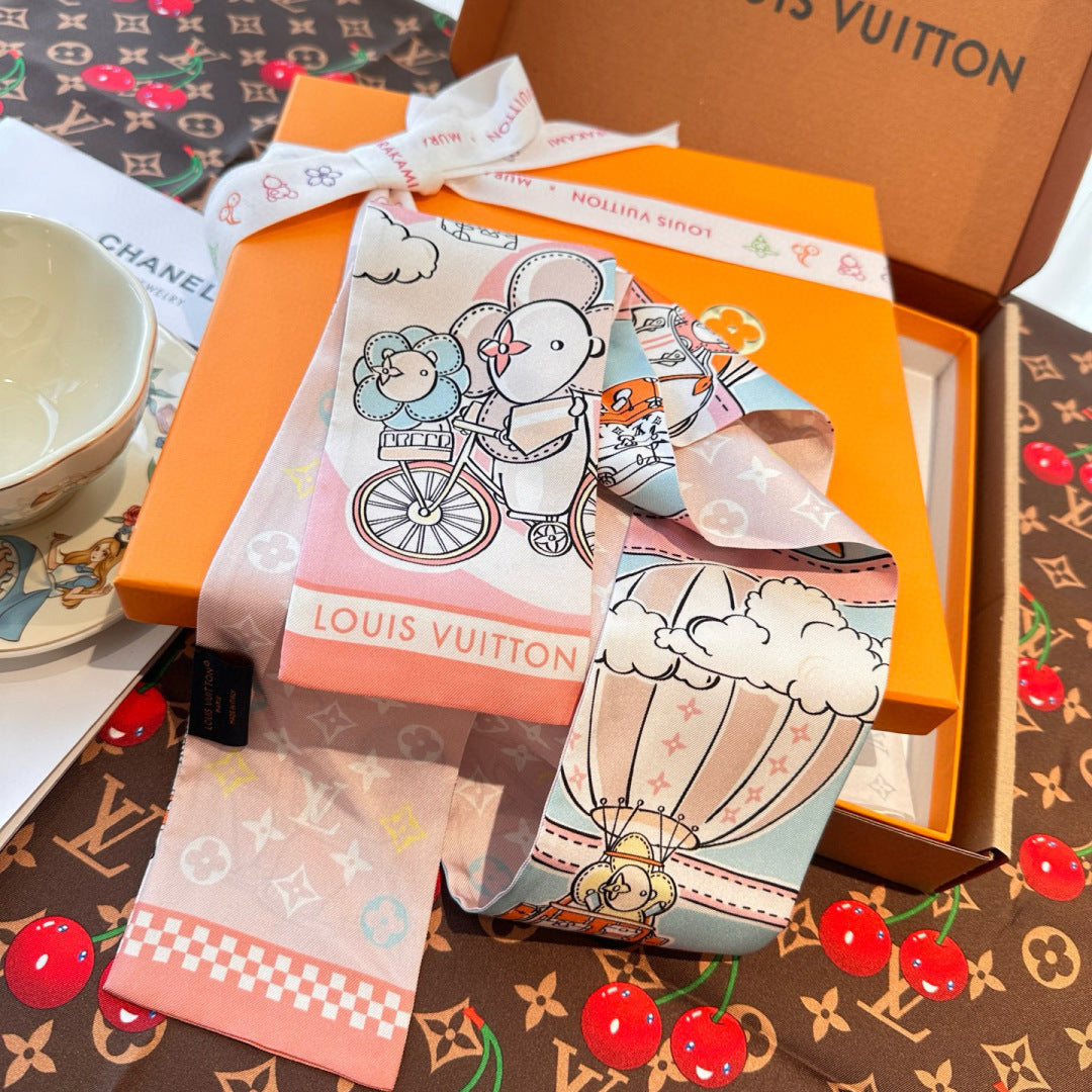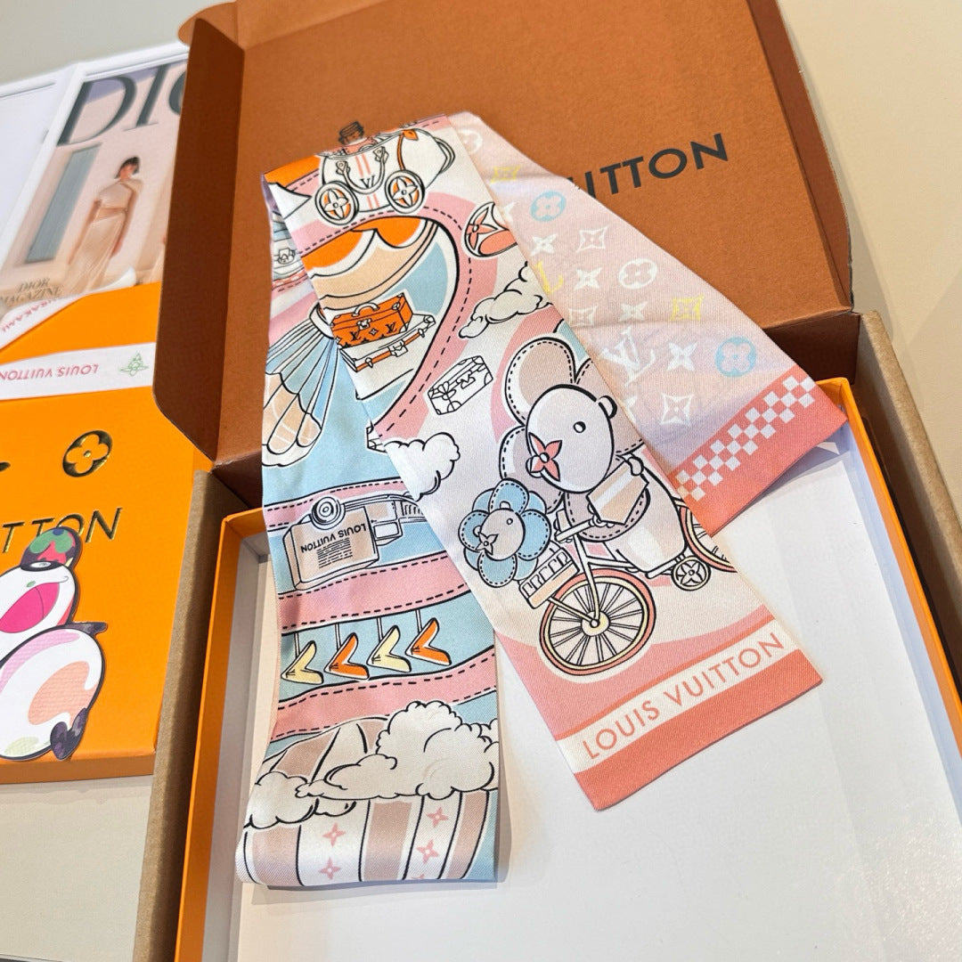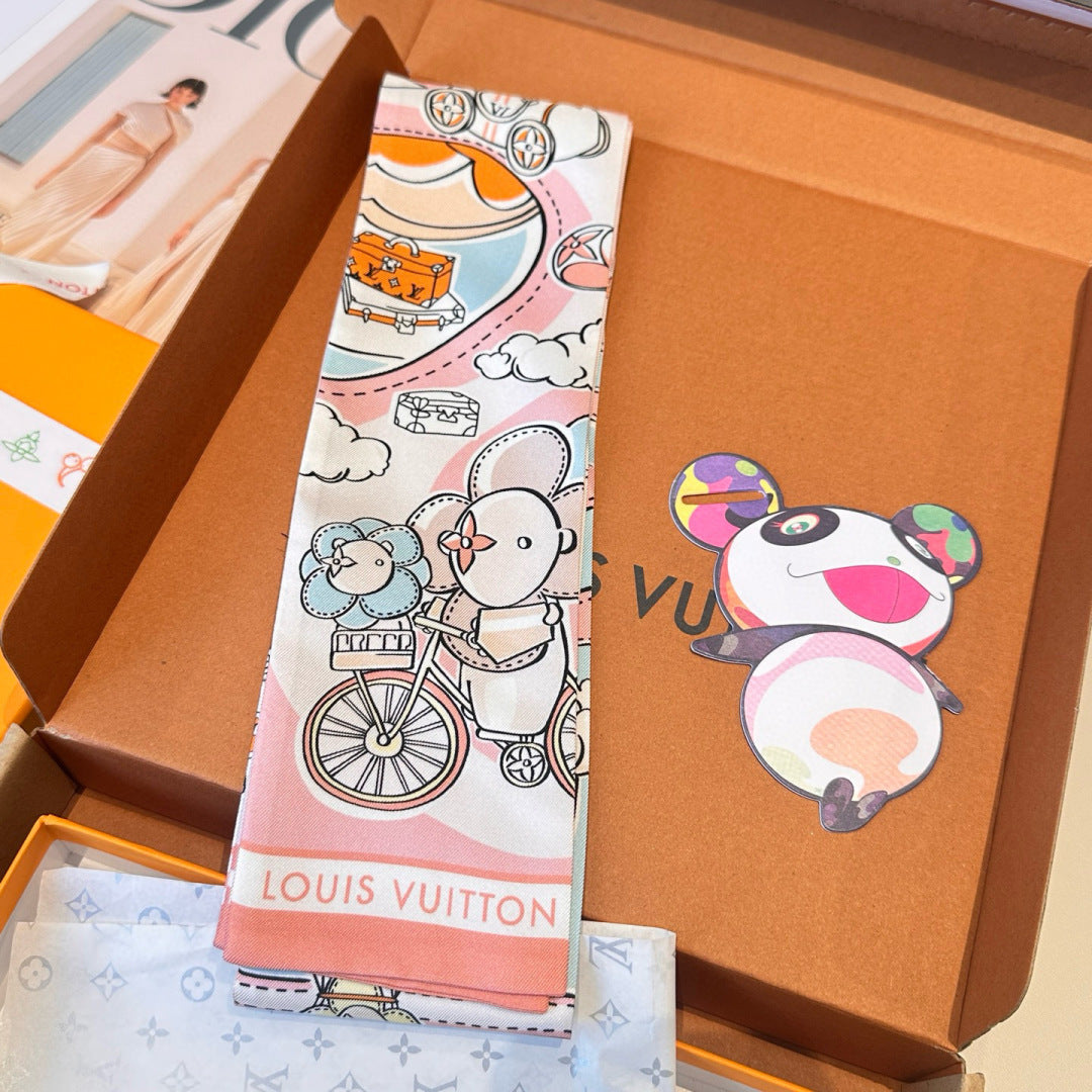 LV Twilly Mini Scarf 86 Midnight Light Pink Silk Twill 967476