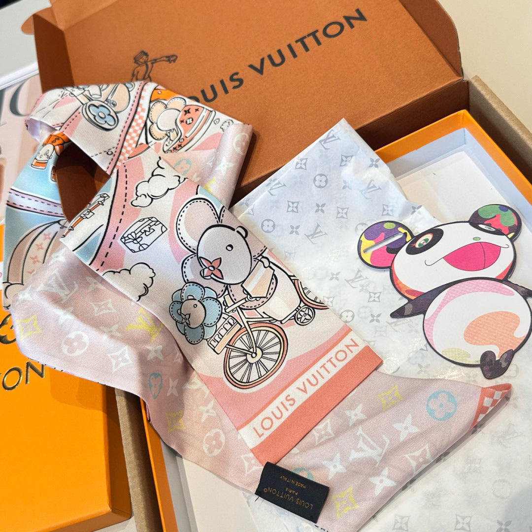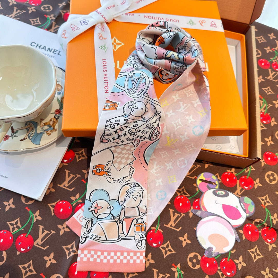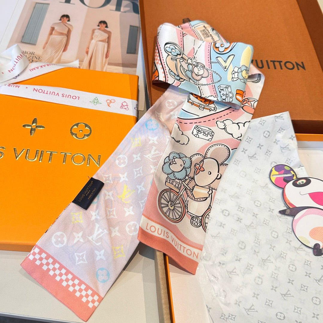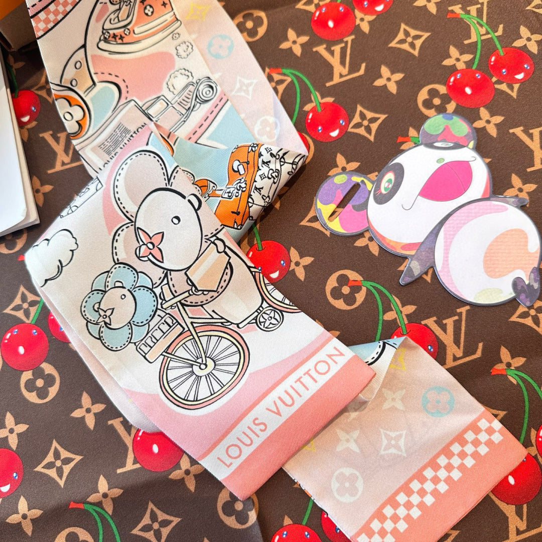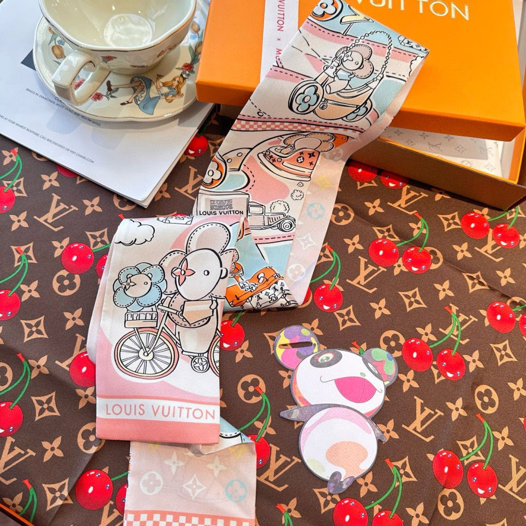 LV Twilly Mini Scarf 86 Midnight Light Pink Silk Twill 967476