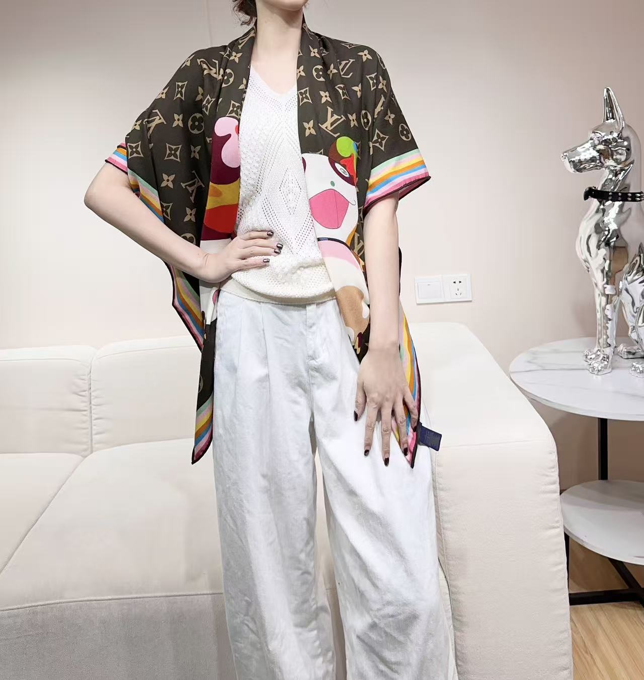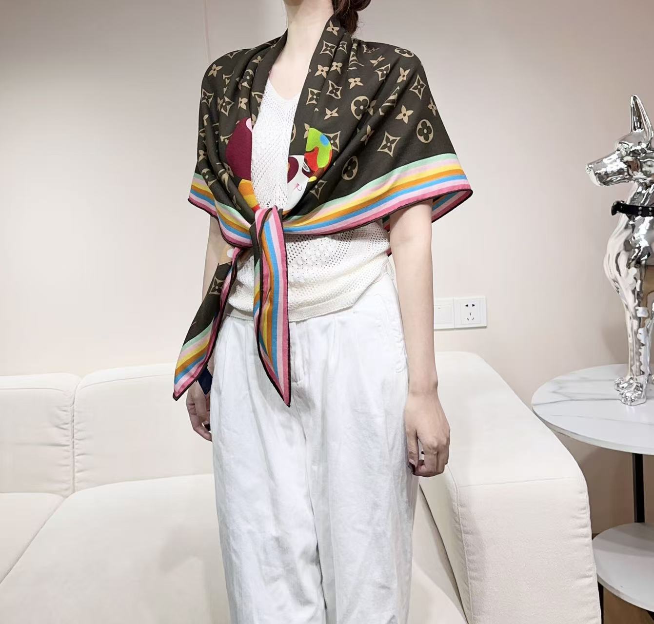 LV x TM SUPERFLAT 140cm Brown Multicolor Silk Wool 978741