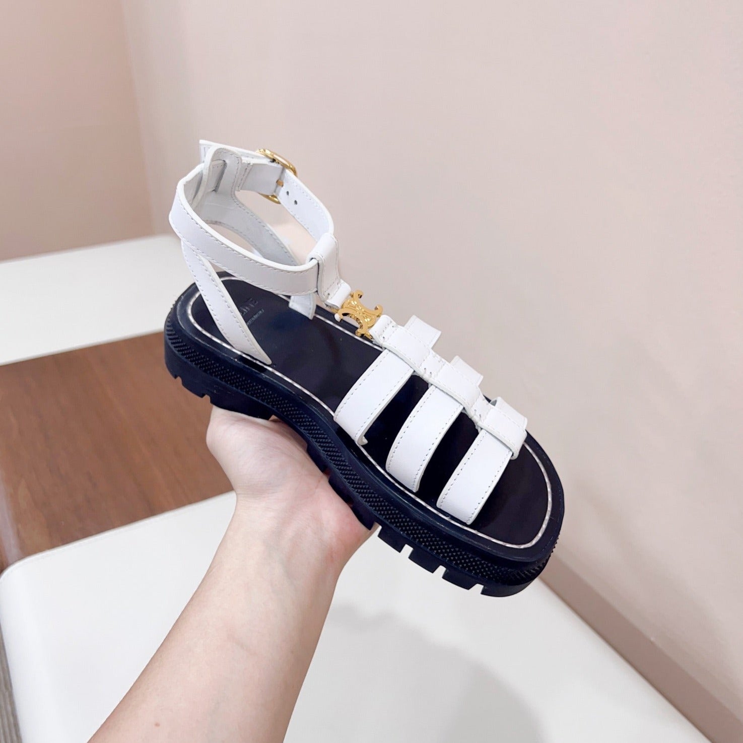 LYMPIA GLADIATOR SANDAL IN CALFSKIN WHITE