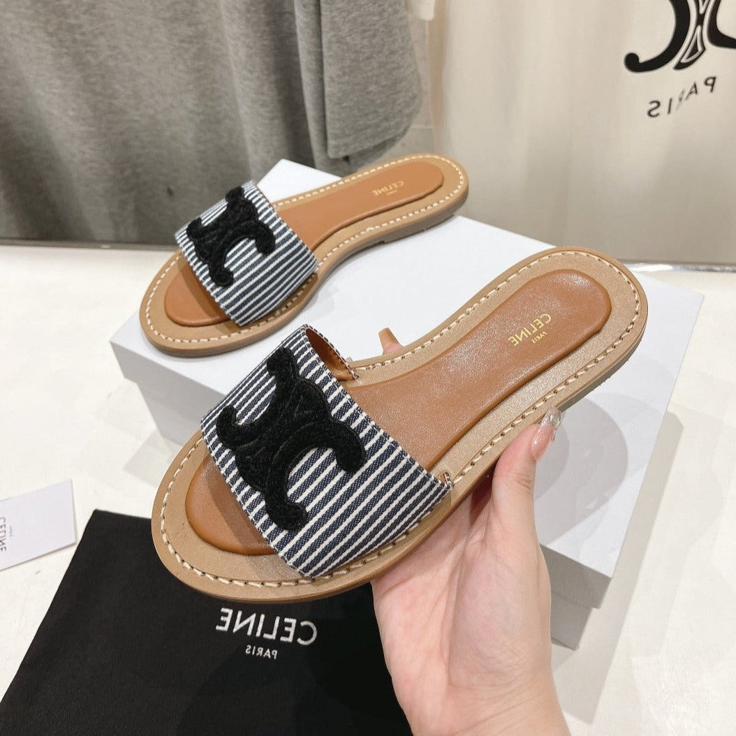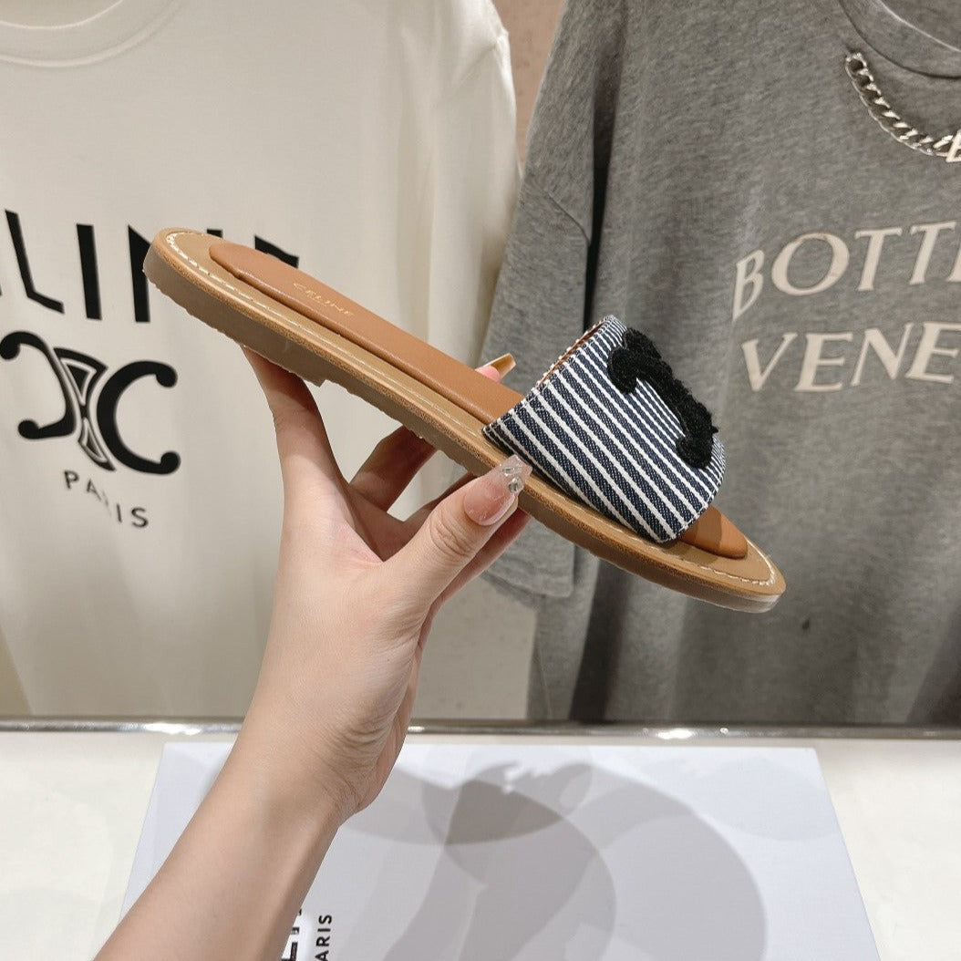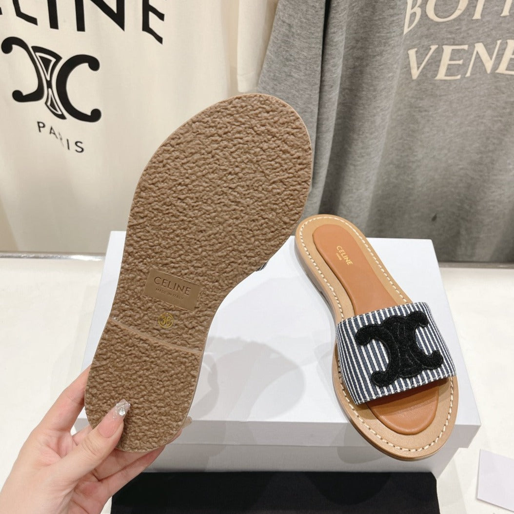 LYMPIA MULE IN TRIOMPHE JACQUARD WOOLLEN FABRIC BLACK CARO