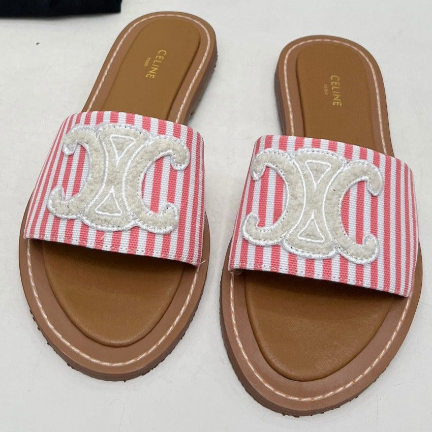 LYMPIA MULE IN TRIOMPHE JACQUARD WOOLLEN FABRIC WHITE PINK CARO