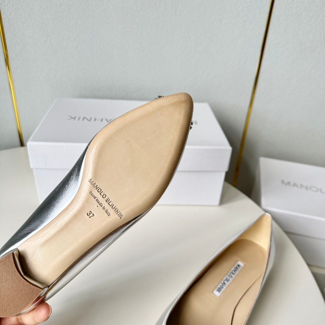 Manolo Diamond Buckle Pumps Silver Mirror Cowhide 451180
