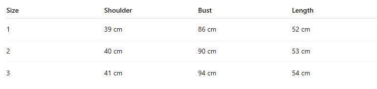 - Size : 1,2,3